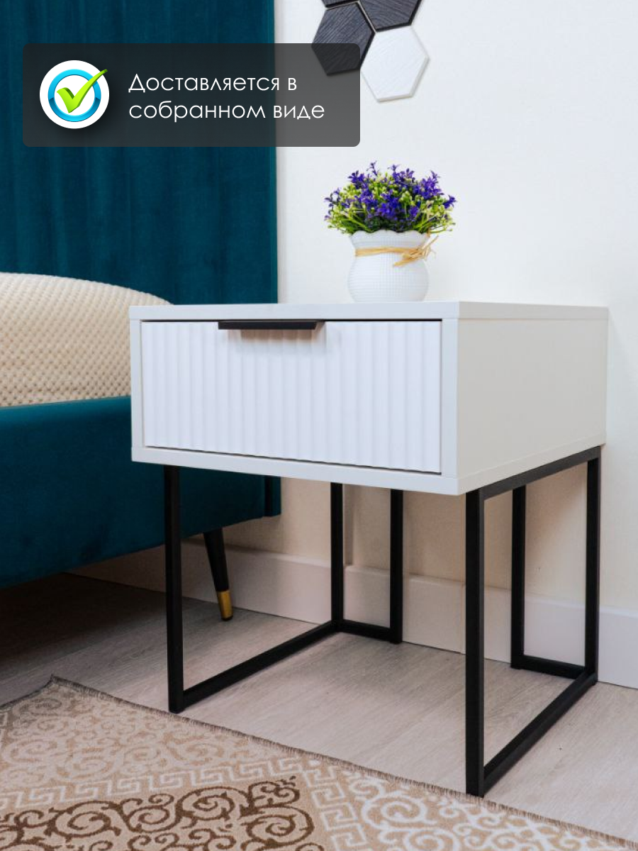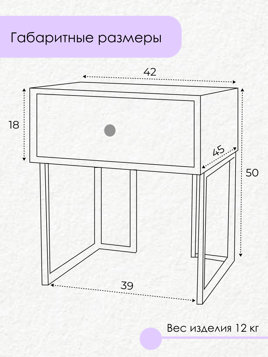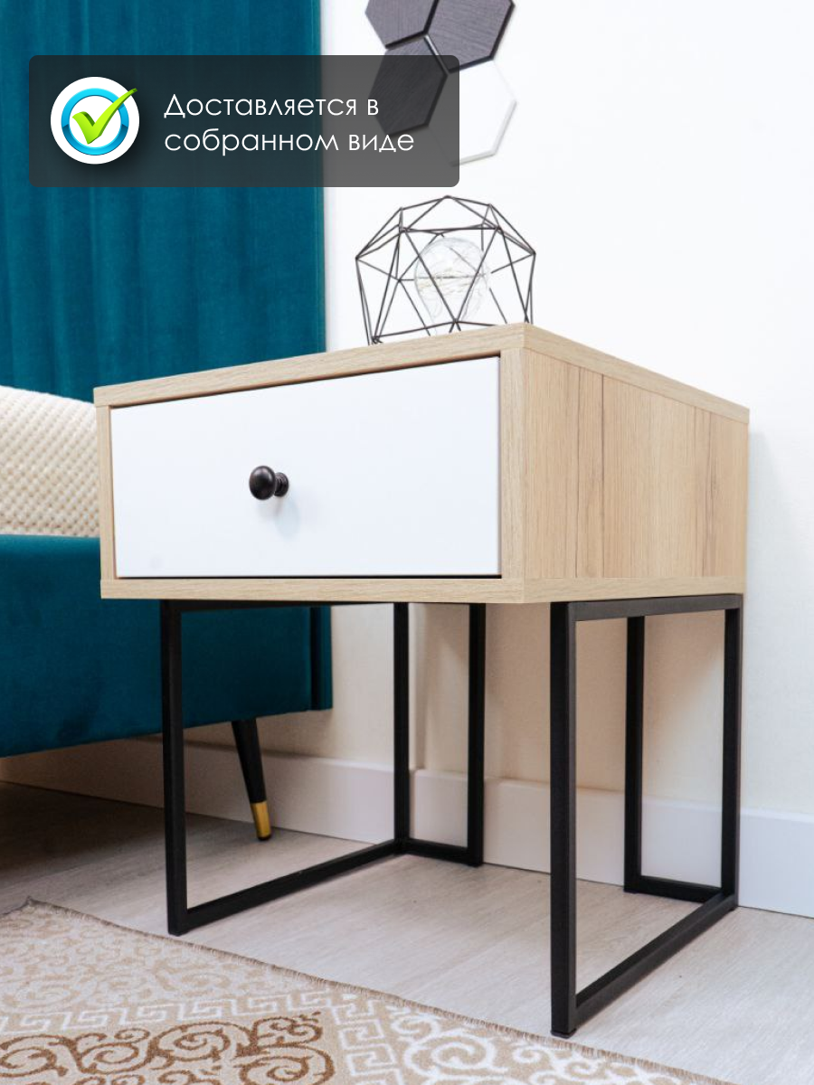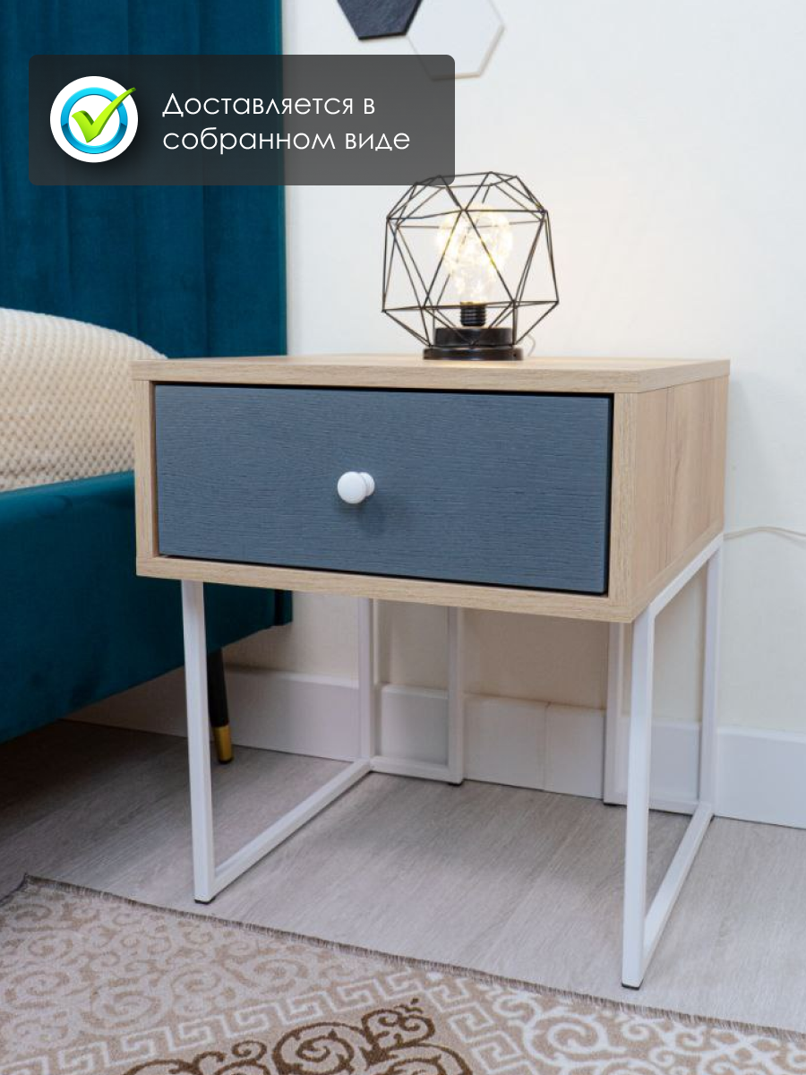 Прикроватная тумба-незаменимый предмет мебели каждой спальни в современном мире; помимо своего прямого назначения она также способна ярко выразить и украсить стиль вашего интерьера. Напольная тумбочка "Алита" создана исключительно для этих целей! Эксклюзивный внешний вид, современные качественные материалы, оптимальные размеры и большое разнообразие расцветок-всё это разработали наши дизайнеры для Вас, дорогие покупатели! Простота и универсальность деревянной тумбы позволит использовать её не только в качестве тумбочки, но и как украшение интерьера гостиной, прихожей, детской или рабочего кабинета. В любом месте вашего дома Алита будет выглядеть стильно и богато. Для вашего удобства мы отправляем прикроватную тумбу с ящиком в собранном виде. Металлический каркас бережно упакован и находится внутри ящика. Состоит из двух независимых частей, установить которые вы сможете по своему усмотрению. Все отверстия на каркасе также сделаны и обработаны. Каждое изделие перед отправкой проходит дополнительный контроль качества, а также видео-фиксацию упаковки на каждую конкретную продажу. Мы искренне надеемся, что наша прикроватная тумба лофт станет украшением вашего дома и будем рады получить ваши фотографии в интерьере. С уважением кампания Мебелидеа!