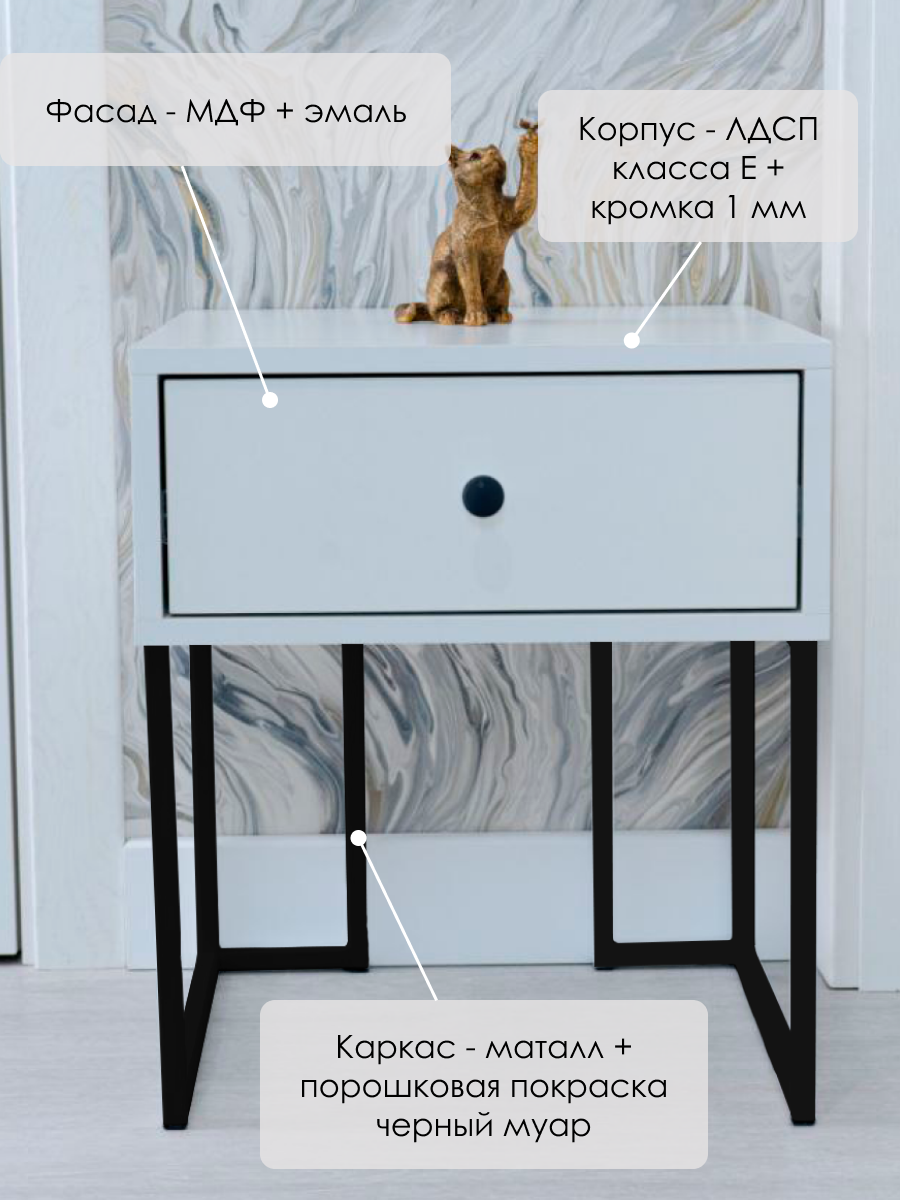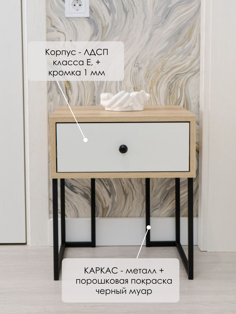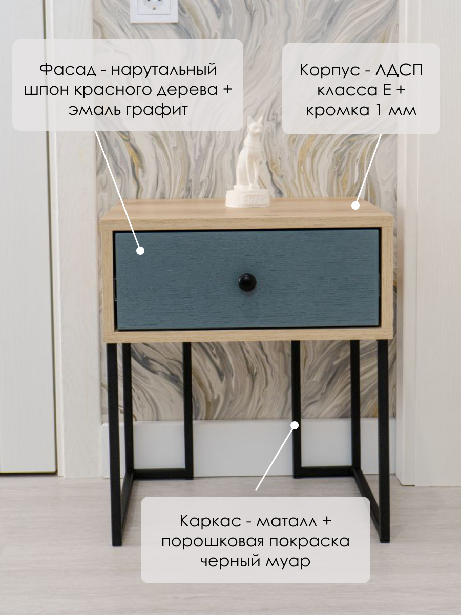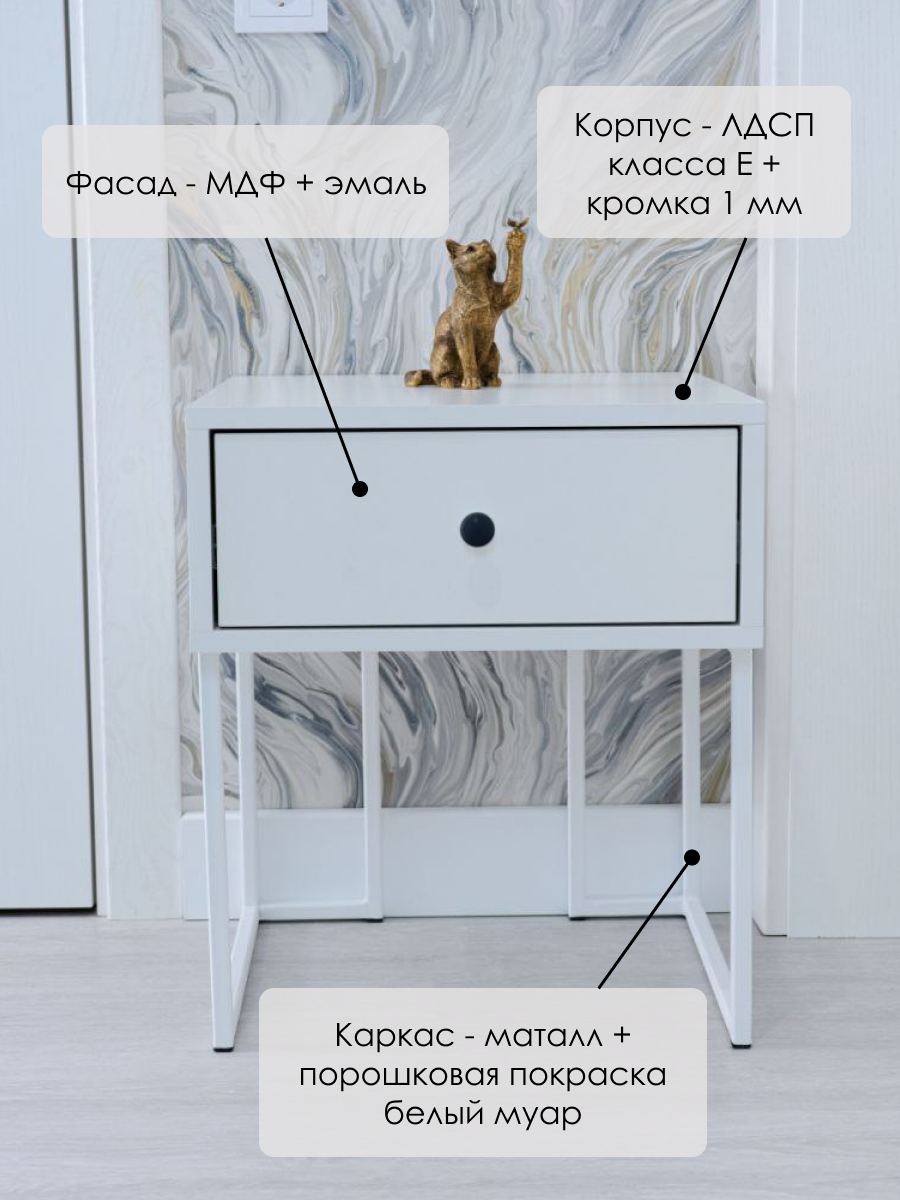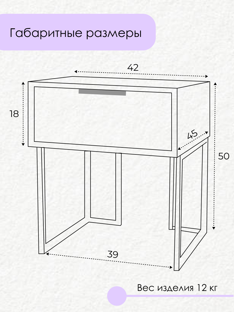 Прикроватная тумба-незаменимый предмет мебели каждой спальни в современном мире; помимо своего прямого назначения она также способна ярко выразить и украсить стиль вашего интерьера. Напольная тумбочка "Алита" создана исключительно для этих целей! Эксклюзивный внешний вид, современные качественные материалы, оптимальные размеры и большое разнообразие расцветок-всё это разработали наши дизайнеры для Вас, дорогие покупатели! Простота и универсальность деревянной тумбы позволит использовать её не только в качестве тумбочки, но и как украшение интерьера гостиной, прихожей, детской или рабочего кабинета. В любом месте вашего дома Алита будет выглядеть стильно и богато. Для вашего удобства мы отправляем прикроватную тумбу с ящиком в собранном виде. Металлический каркас бережно упакован и находится внутри ящика. Состоит из двух независимых частей, установить которые вы сможете по своему усмотрению. Все отверстия на каркасе также сделаны и обработаны. Каждое изделие перед отправкой проходит дополнительный контроль качества, а также видео-фиксацию упаковки на каждую конкретную продажу. Мы искренне надеемся, что наша прикроватная тумба лофт станет украшением вашего дома и будем рады получить ваши фотографии в интерьере. С уважением кампания Мебелидеа!