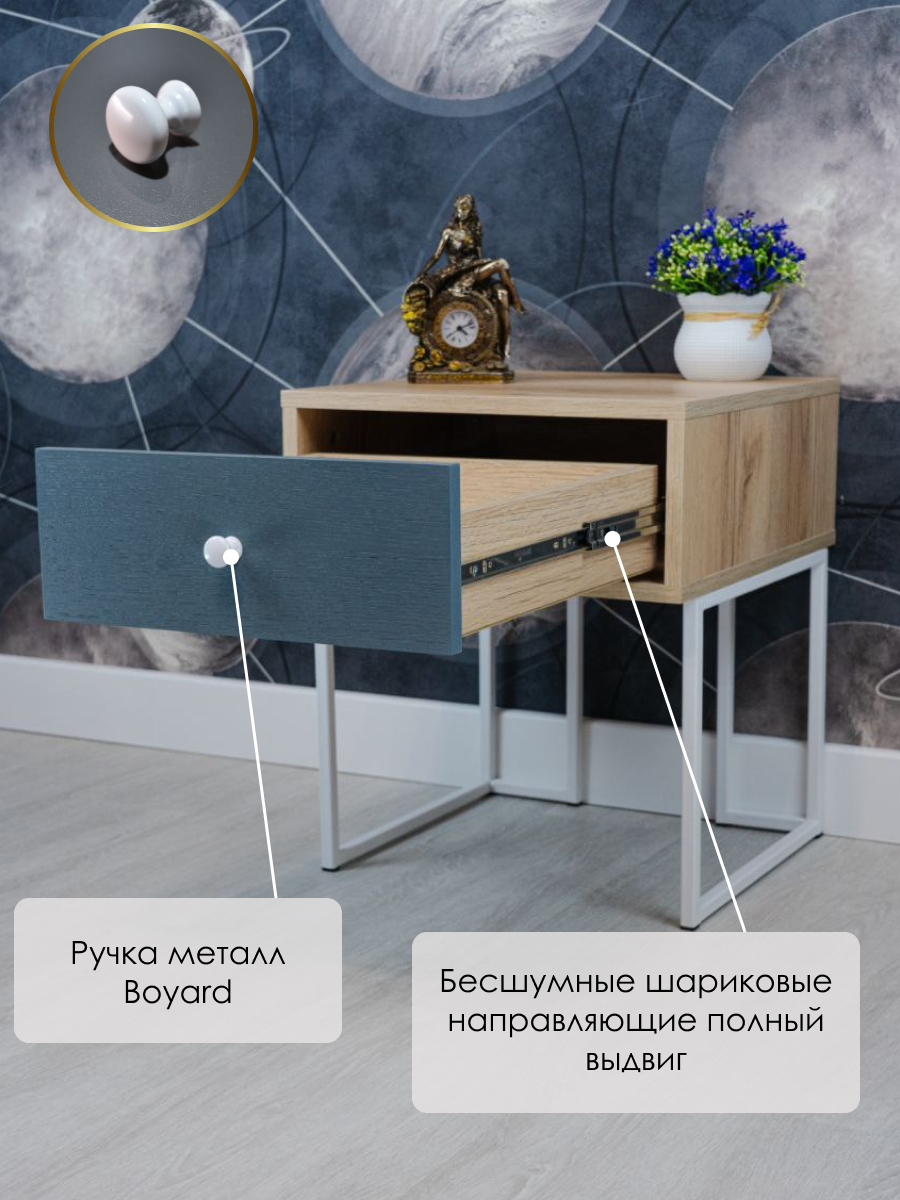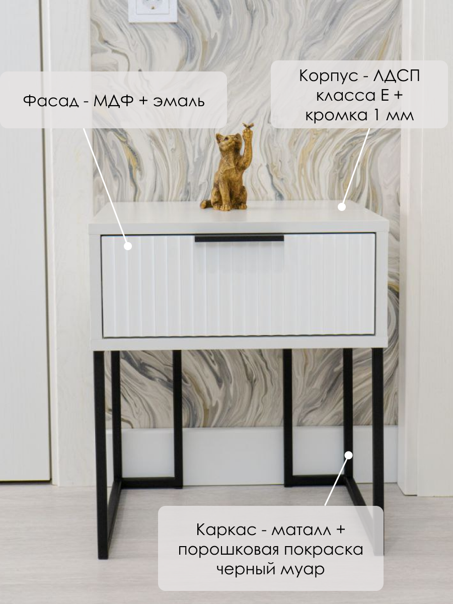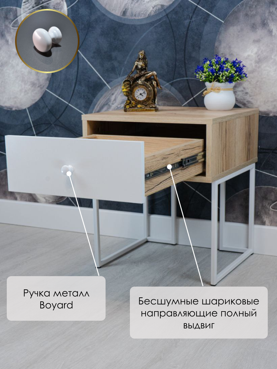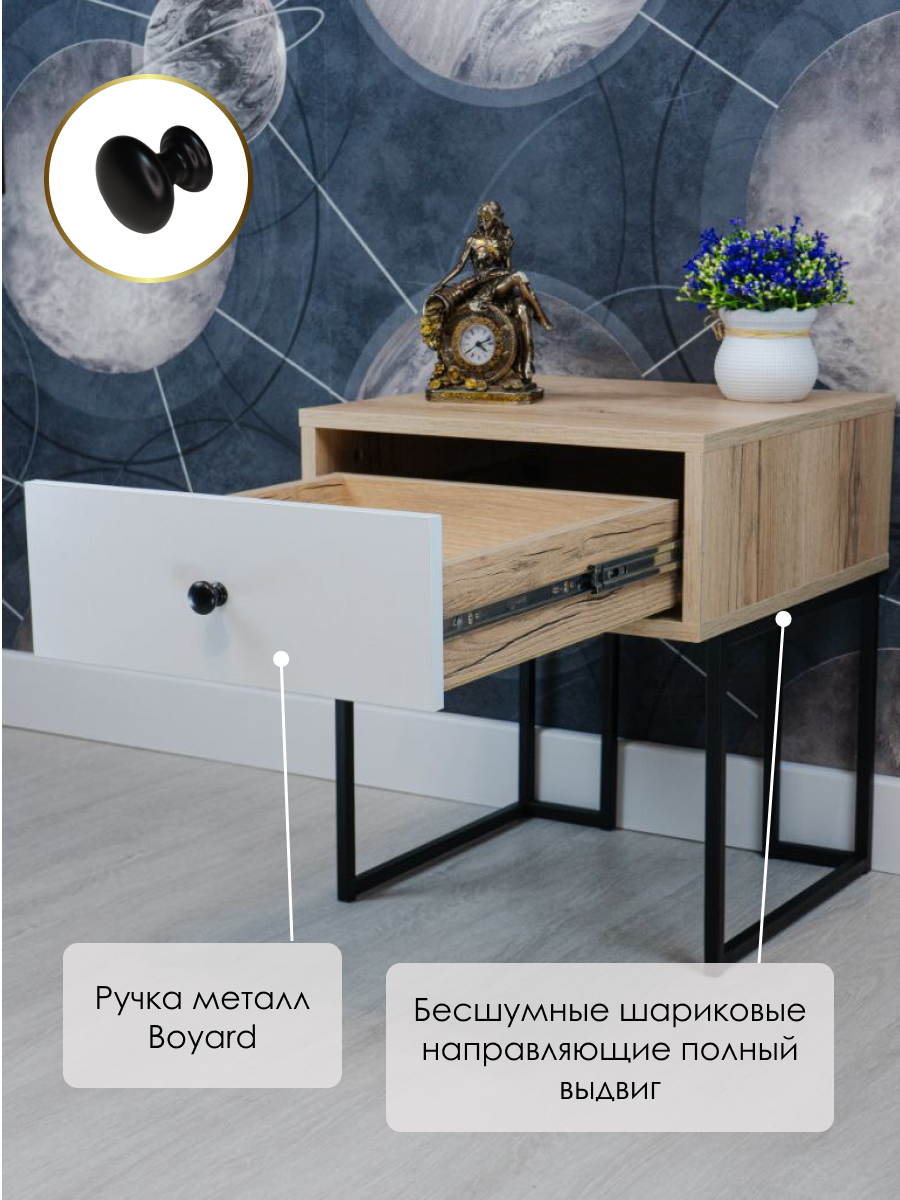 Прикроватная тумба-незаменимый предмет мебели каждой спальни в современном мире; помимо своего прямого назначения она также способна ярко выразить и украсить стиль вашего интерьера. Напольная тумбочка "Алита" создана исключительно для этих целей! Эксклюзивный внешний вид, современные качественные материалы, оптимальные размеры и большое разнообразие расцветок-всё это разработали наши дизайнеры для Вас, дорогие покупатели! Простота и универсальность деревянной тумбы позволит использовать её не только в качестве тумбочки, но и как украшение интерьера гостиной, прихожей, детской или рабочего кабинета. В любом месте вашего дома Алита будет выглядеть стильно и богато. Для вашего удобства мы отправляем прикроватную тумбу с ящиком в собранном виде. Металлический каркас бережно упакован и находится внутри ящика. Состоит из двух независимых частей, установить которые вы сможете по своему усмотрению. Все отверстия на каркасе также сделаны и обработаны. Каждое изделие перед отправкой проходит дополнительный контроль качества, а также видео-фиксацию упаковки на каждую конкретную продажу. Мы искренне надеемся, что наша прикроватная тумба лофт станет украшением вашего дома и будем рады получить ваши фотографии в интерьере. С уважением кампания Мебелидеа!
