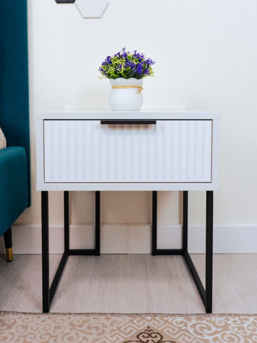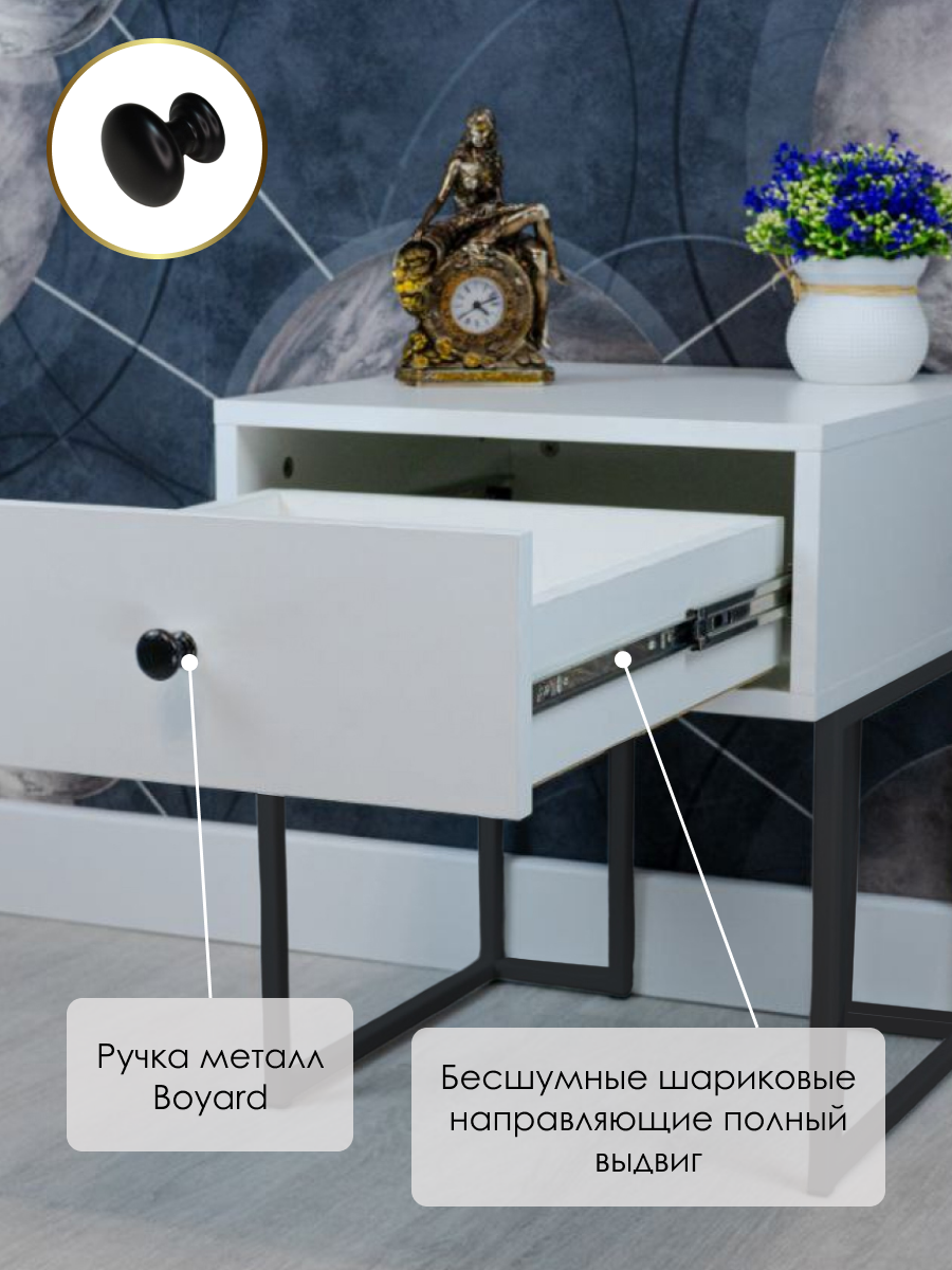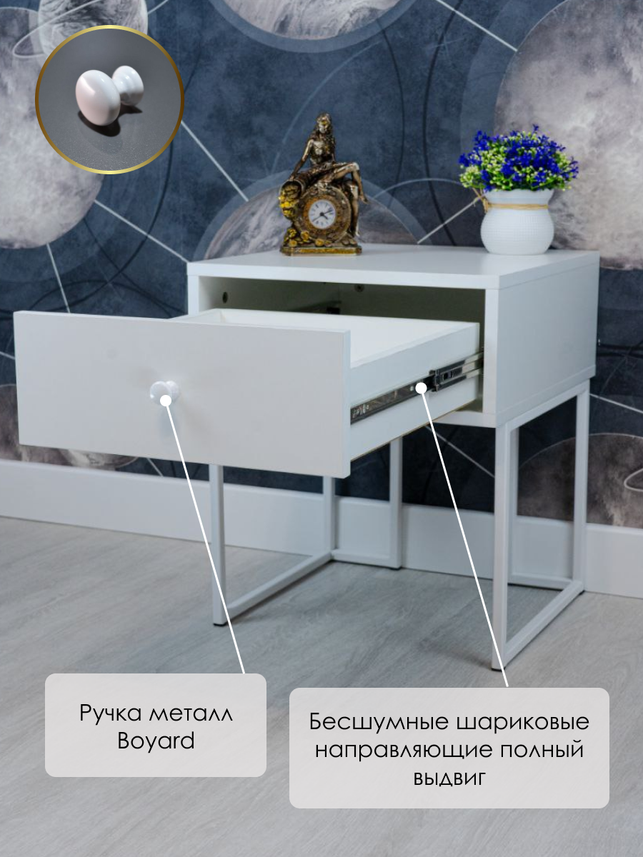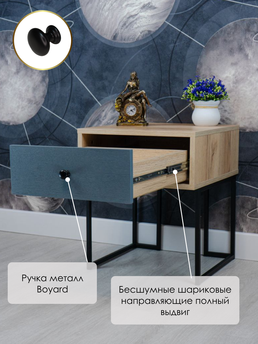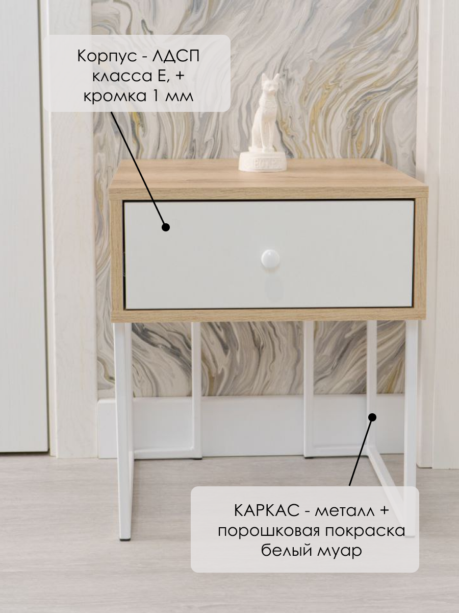 Прикроватная тумба-незаменимый предмет мебели каждой спальни в современном мире; помимо своего прямого назначения она также способна ярко выразить и украсить стиль вашего интерьера. Напольная тумбочка "Алита" создана исключительно для этих целей! Эксклюзивный внешний вид, современные качественные материалы, оптимальные размеры и большое разнообразие расцветок-всё это разработали наши дизайнеры для Вас, дорогие покупатели! Простота и универсальность деревянной тумбы позволит использовать её не только в качестве тумбочки, но и как украшение интерьера гостиной, прихожей, детской или рабочего кабинета. В любом месте вашего дома Алита будет выглядеть стильно и богато. Для вашего удобства мы отправляем прикроватную тумбу с ящиком в собранном виде. Металлический каркас бережно упакован и находится внутри ящика. Состоит из двух независимых частей, установить которые вы сможете по своему усмотрению. Все отверстия на каркасе также сделаны и обработаны. Каждое изделие перед отправкой проходит дополнительный контроль качества, а также видео-фиксацию упаковки на каждую конкретную продажу. Мы искренне надеемся, что наша прикроватная тумба лофт станет украшением вашего дома и будем рады получить ваши фотографии в интерьере. С уважением кампания Мебелидеа!