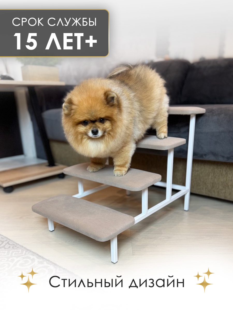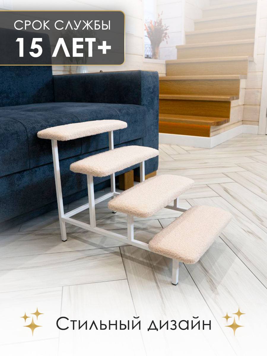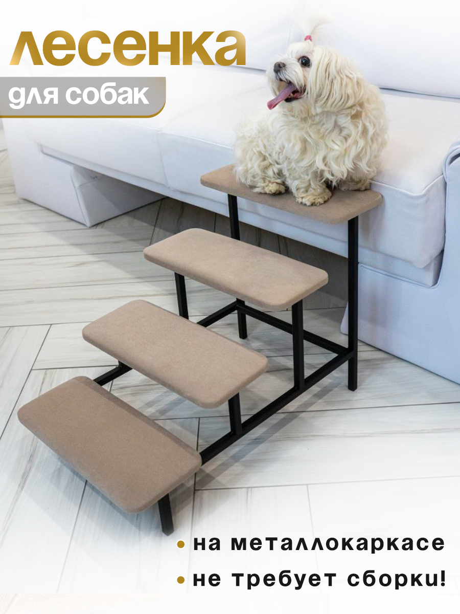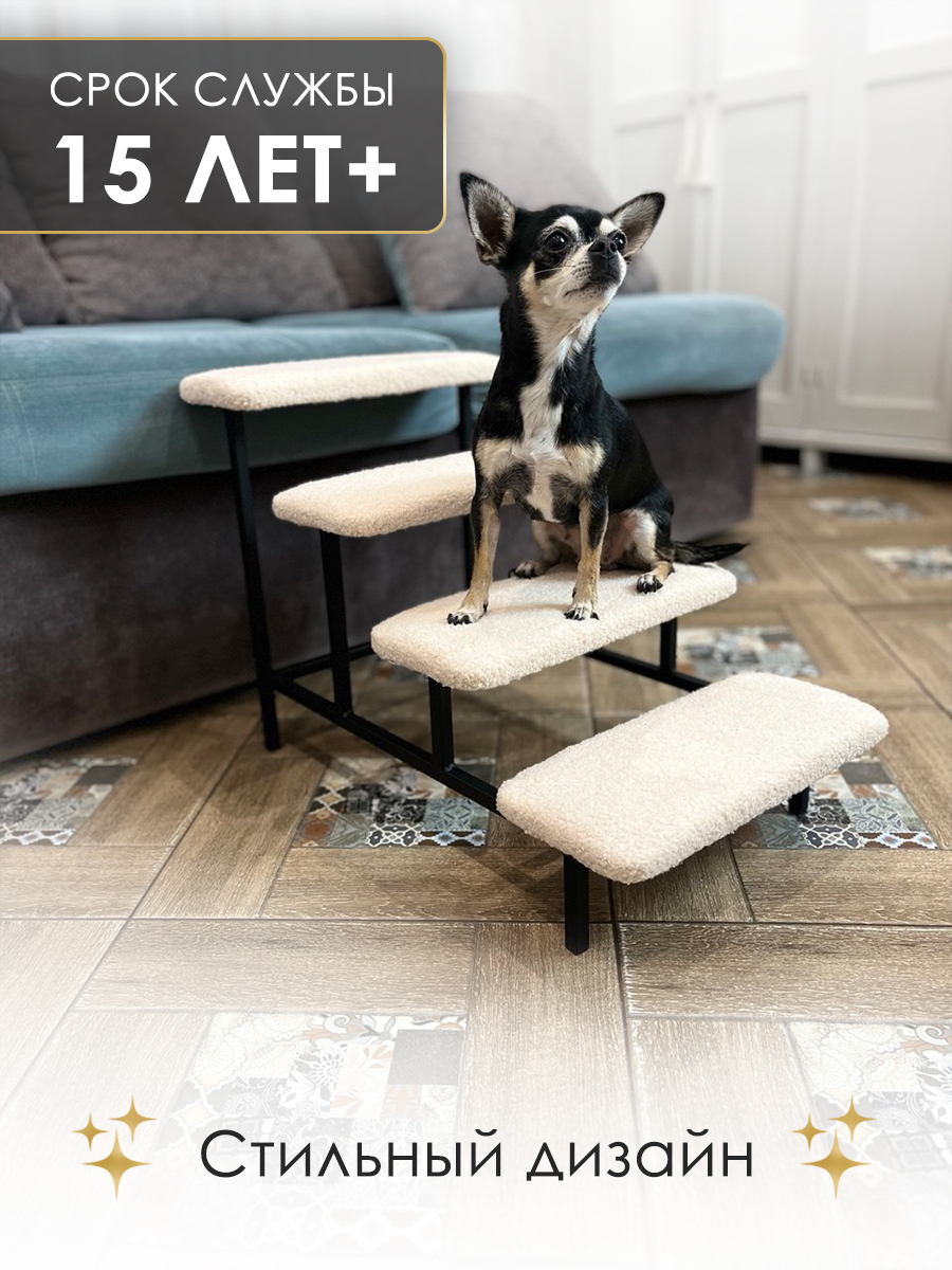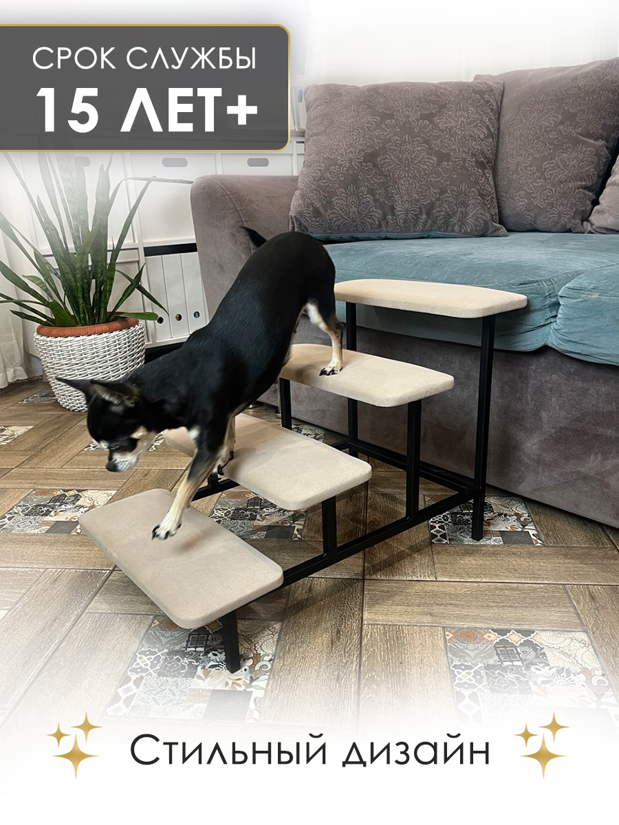 Лестница для собачек маленьких пород прикроватная на металлокаркасе в стиле Лофт! Совершенно новое дизайнерское изделие домашней мебели, аналогов которому на сегодняшний день на рынке нет. Благодаря своему эстетичному внешнему виду лесенка гармонично впишется в любой современный интерьер , поэтому мы предлагаем вам несколько вариантов расцветок и материала, как на белом каркасе, так и на чёрном. Лёгкая по весу, но в то же время прочная конструкция собрана из металлического профили 15 мм с использованием сварки, полностью ручная работа. Металл покрыт порошково-полимерной краской с повышенной износостойкость, максимальная допустимая нагрузка до 40 кг. Панели выполнены из фанеры 12 мм, с закруглениями на углах; мягкие, покрыты поролоном в 1 см. Крепятся панели к каркасу лесенки для животных на цинковые саморезы с увеличенной шляпкой. Обратите внимание-для собак предпочтительнее более глубокий шаг ступени, поэтому верхняя и нижняя ступень установлены со смещением, для наибольшего удобства вашего питомца при спуске и подъёме. Вы можете изменить расположение ступенек на своё усмотрение. Лестница для собачек имеет универсальную высоту 43 см оптимально подойдёт для кровати, дивана, кресла, банкеток и скамеек. Вы можете смело двигать её по поверхности пола, установленные пластиковые заглушки-подпятники следов не оставят. Доставляется прикроватная лесенка для собак в собранном виде, в крепкой картонной коробке, и весит при этом всего 5 кг.