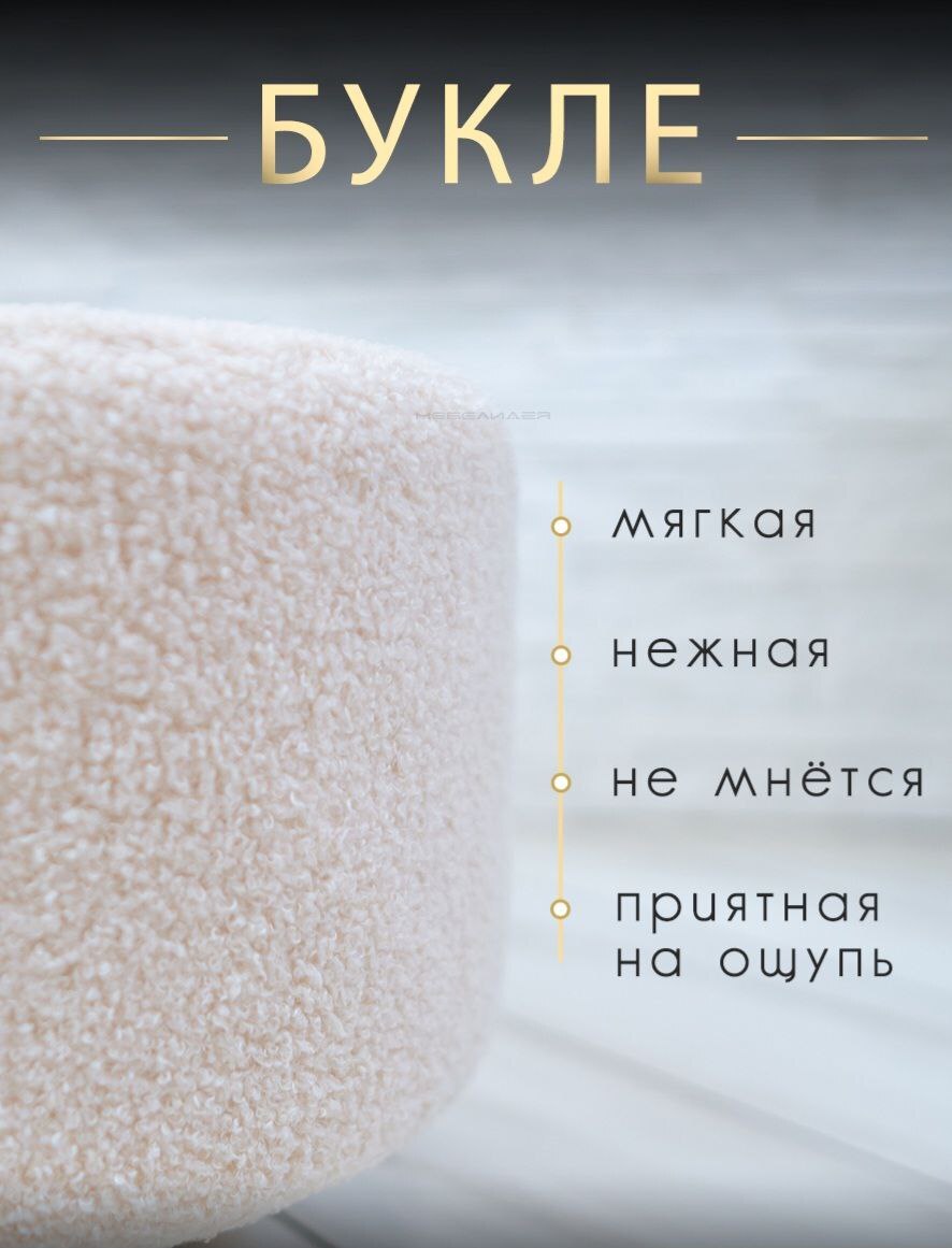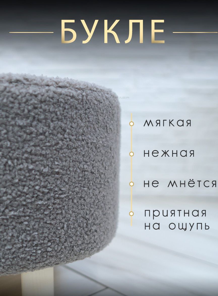 Её оригинальная обивка из букле придает изделию особый шарм и элегантность. Мягкая поверхность позволяет удобно разместиться, а продуманный дизайн делает банкетку универсальной — она легко впишется в разные стили интерьера, будь то классика или современный минимализм. Используйте её как прикроватный пуф для удобства, или разместите в прихожей для создания уникального стиля.