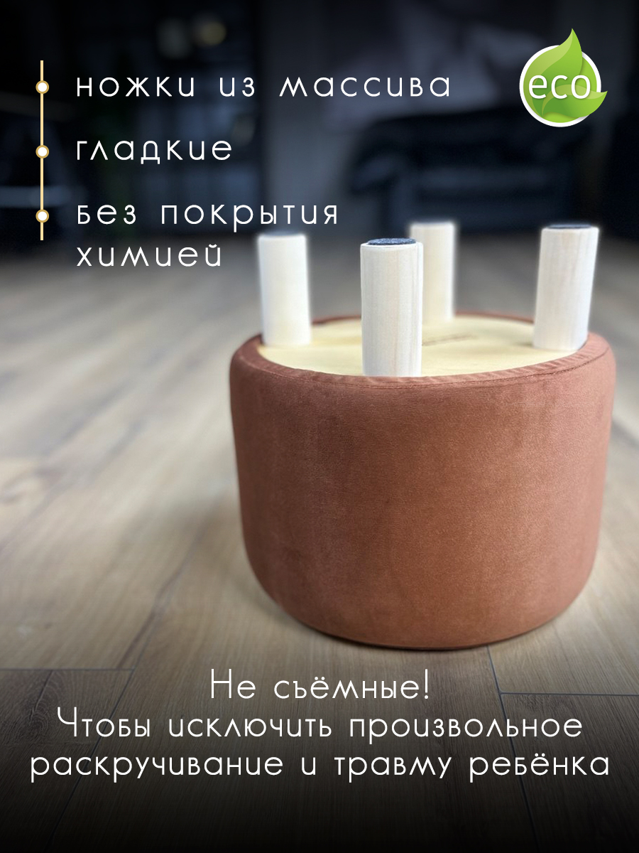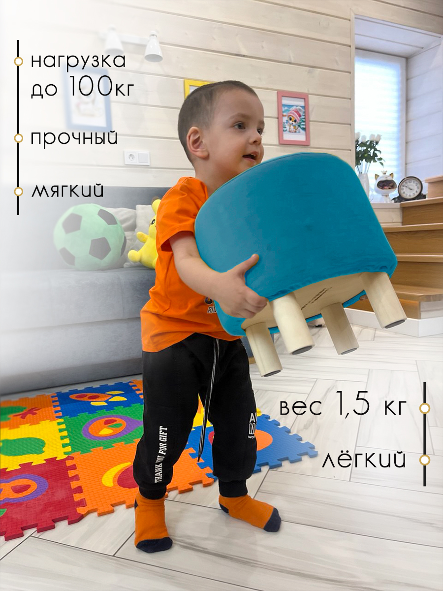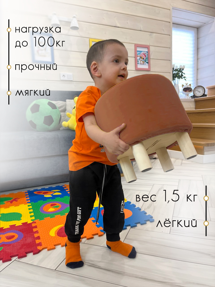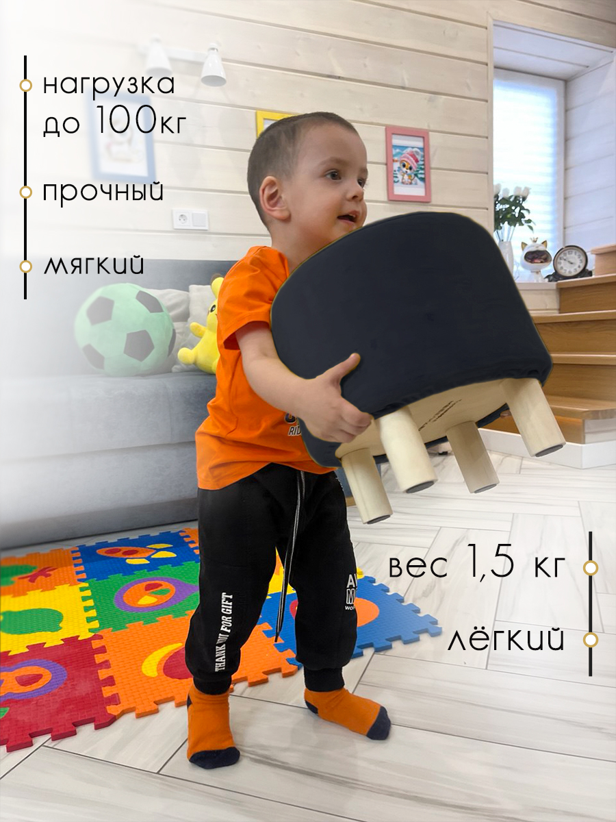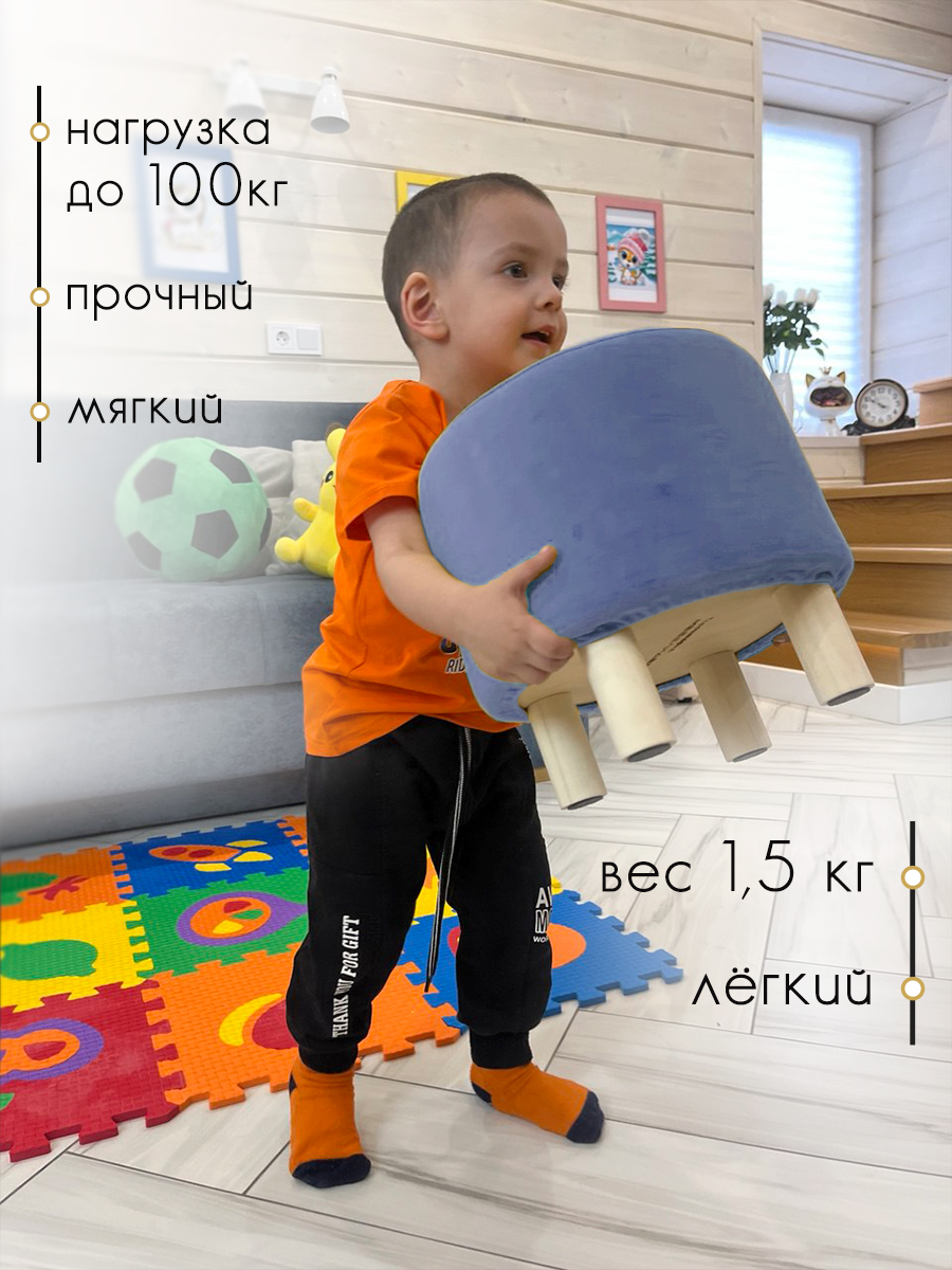 Мы не используем клей для крепления внутренних слоев, чтобы избежать вредного воздействия химии и неприятного запаха; снять и одеть новый чехол у вас труда не составит. Этот пуфик на ножках станет прекрасным подарком вашему ребёнку или родному человеку. Банкетка детская не занимает много места, подойдет для прихожей, спальни, детской. Используйте как стульчик подставку или пуфик для ног.