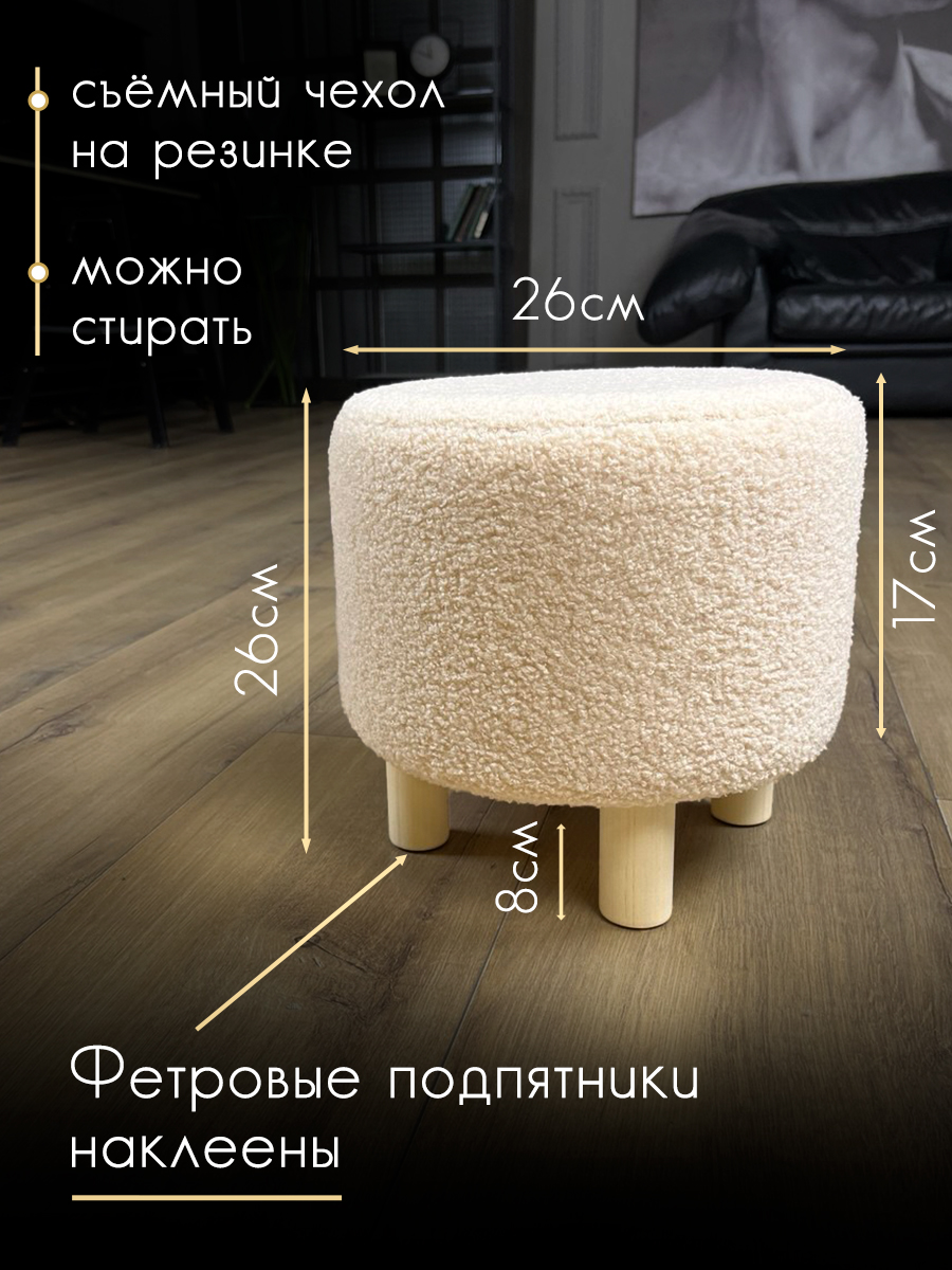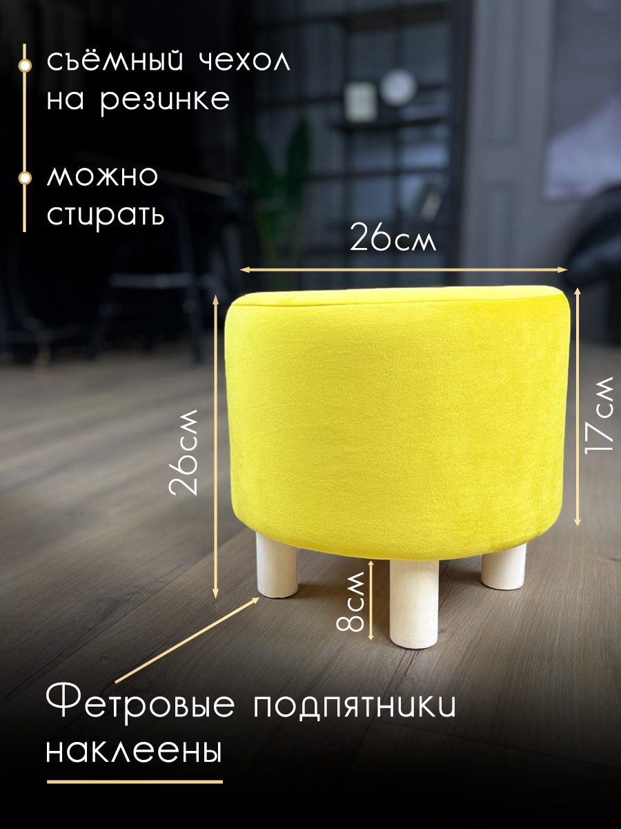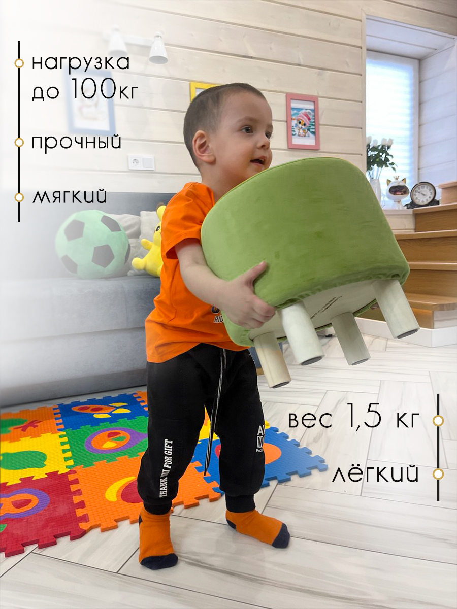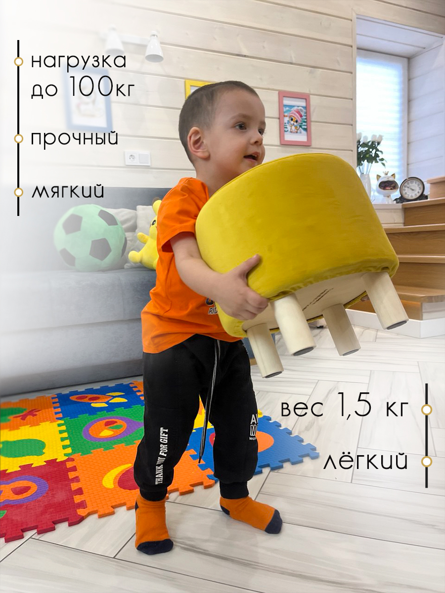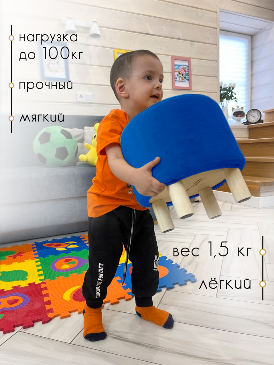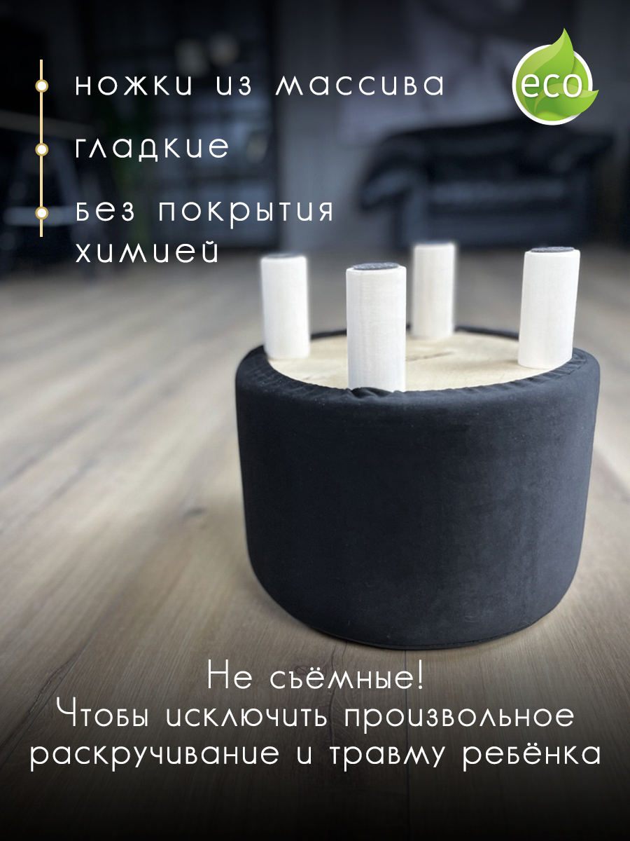 Мы не используем клей для крепления внутренних слоев, чтобы избежать вредного воздействия химии и неприятного запаха; снять и одеть новый чехол у вас труда не составит. Этот пуфик на ножках станет прекрасным подарком вашему ребёнку или родному человеку. Банкетка детская не занимает много места, подойдет для прихожей, спальни, детской. Используйте как стульчик подставку или пуфик для ног.