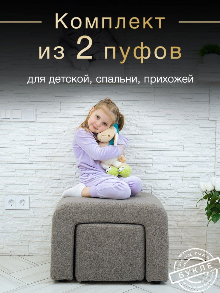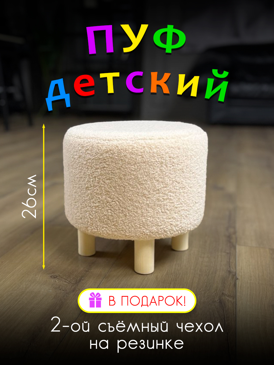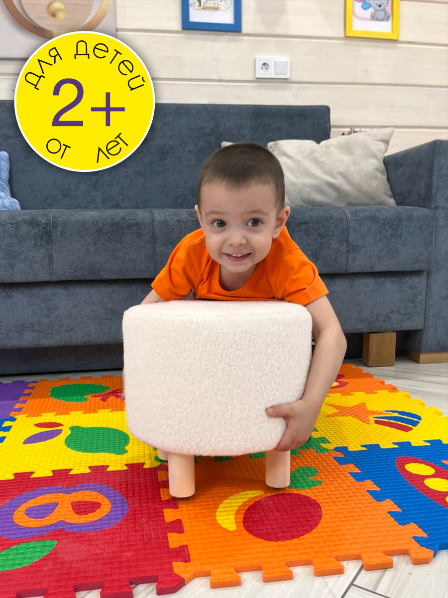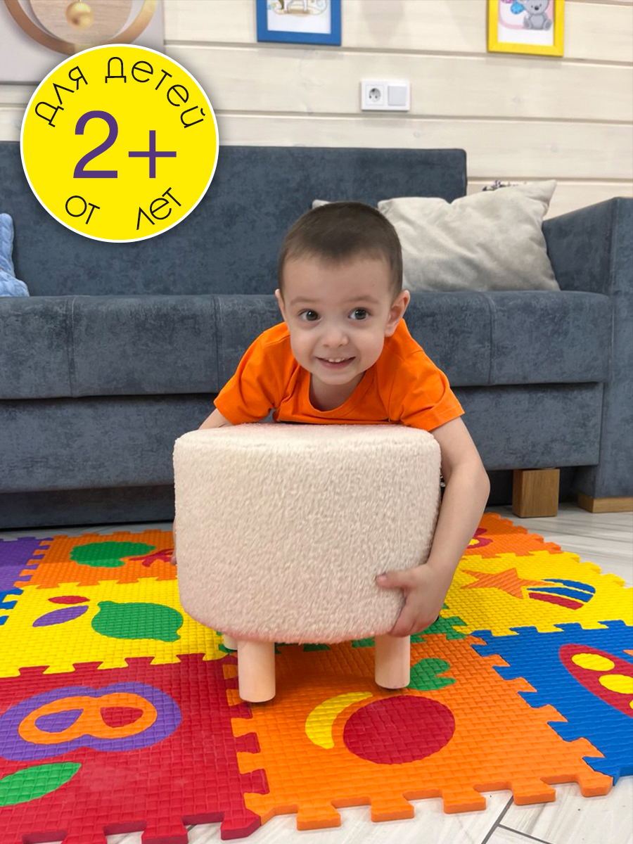Это изделие создано для самых маленьких детей возрастом от 2-х лет, прекрасно подойдет как пуфик для ребенка трех лет, четырех лет. Пуфик бежевый выполнен из ткани Букле.