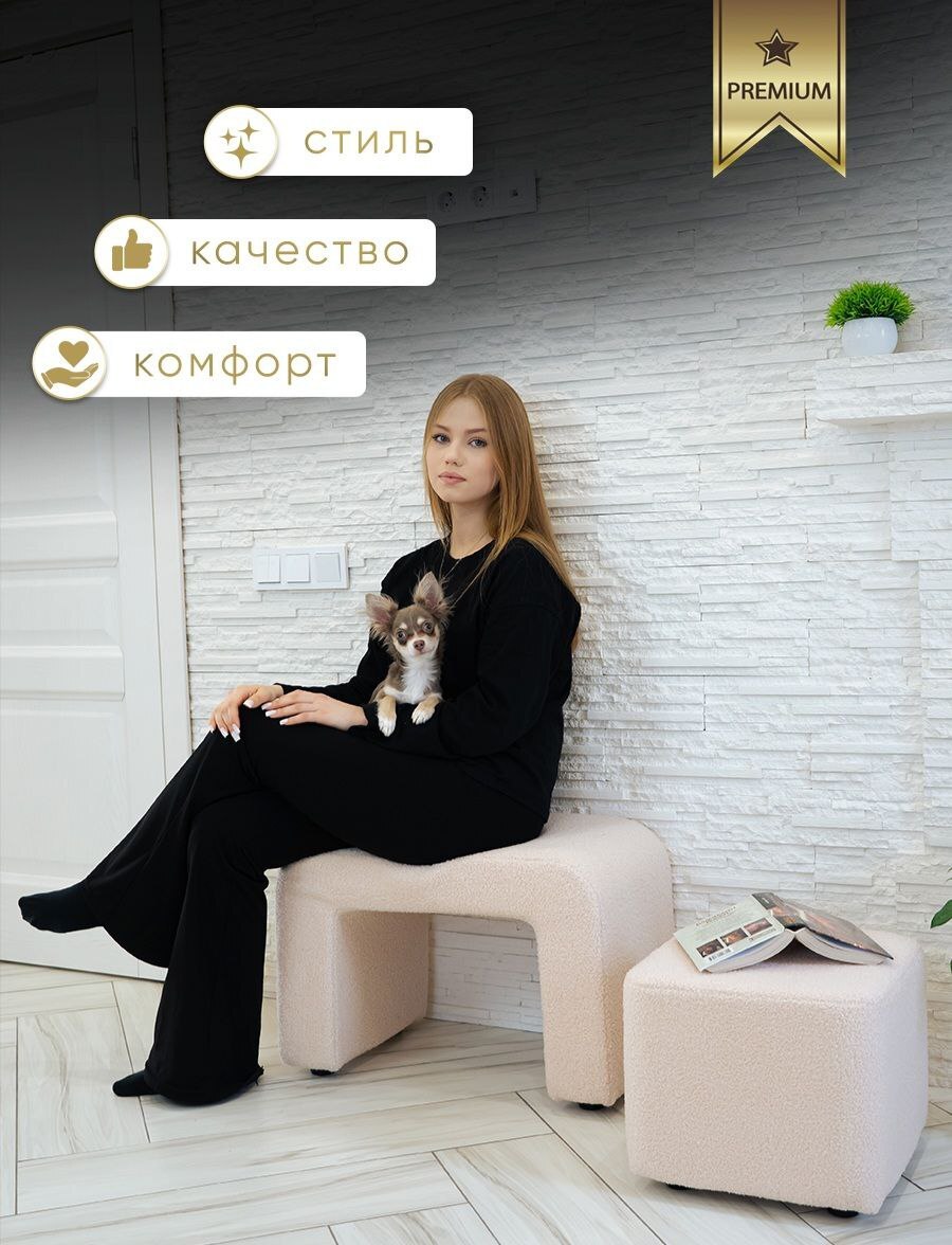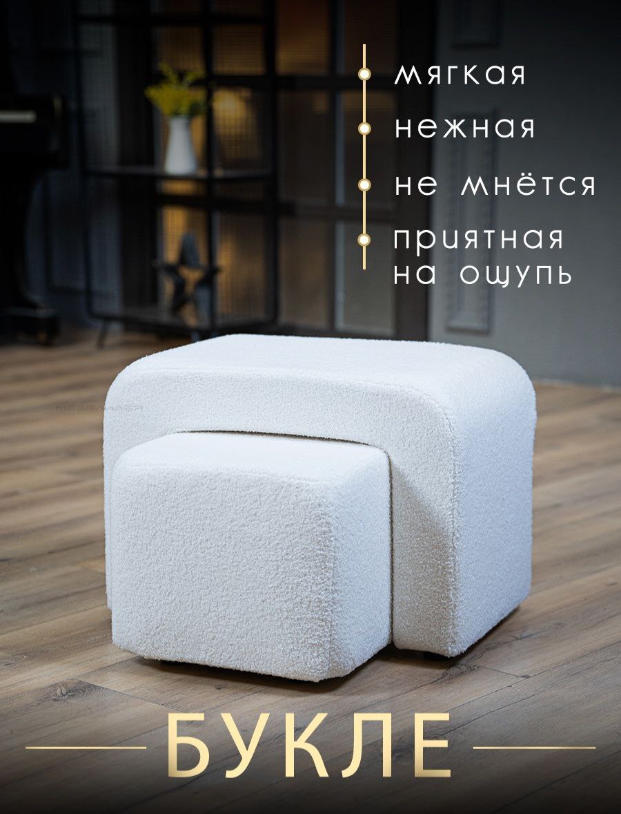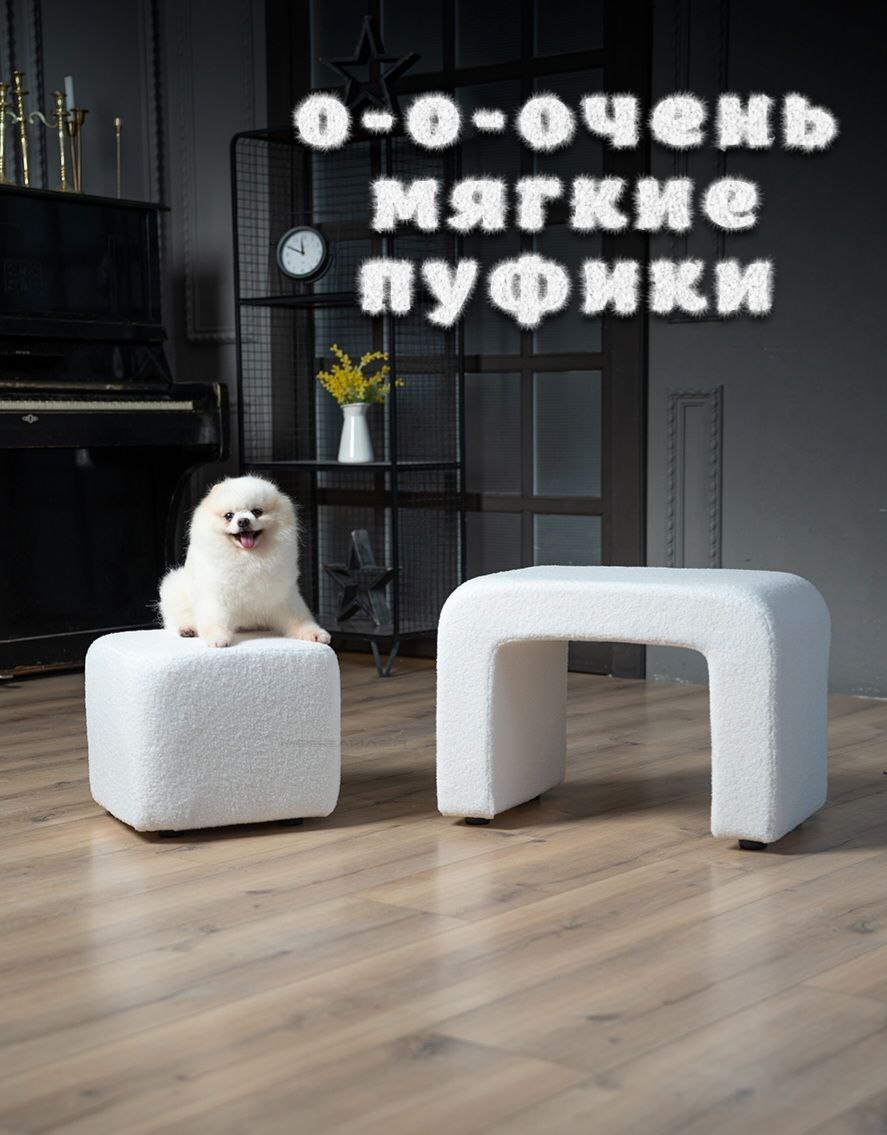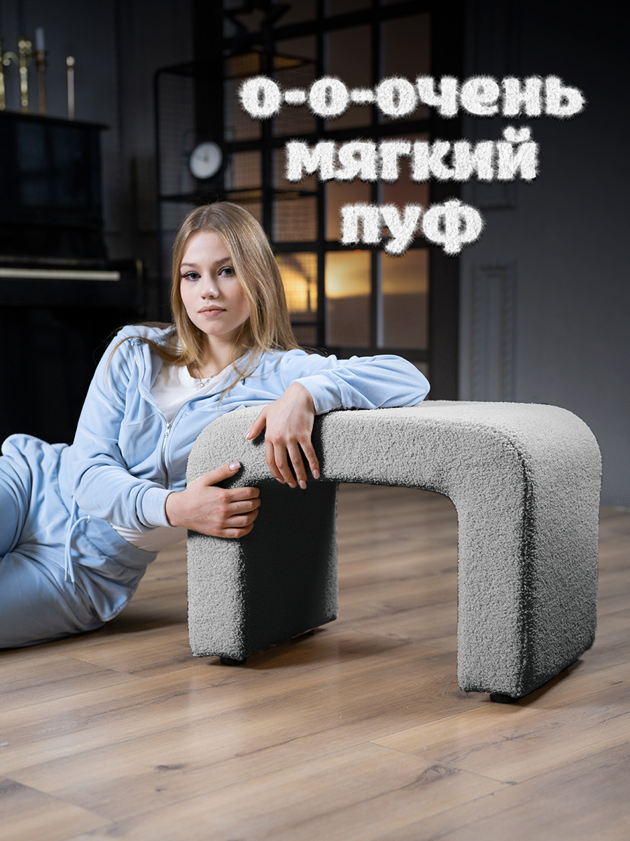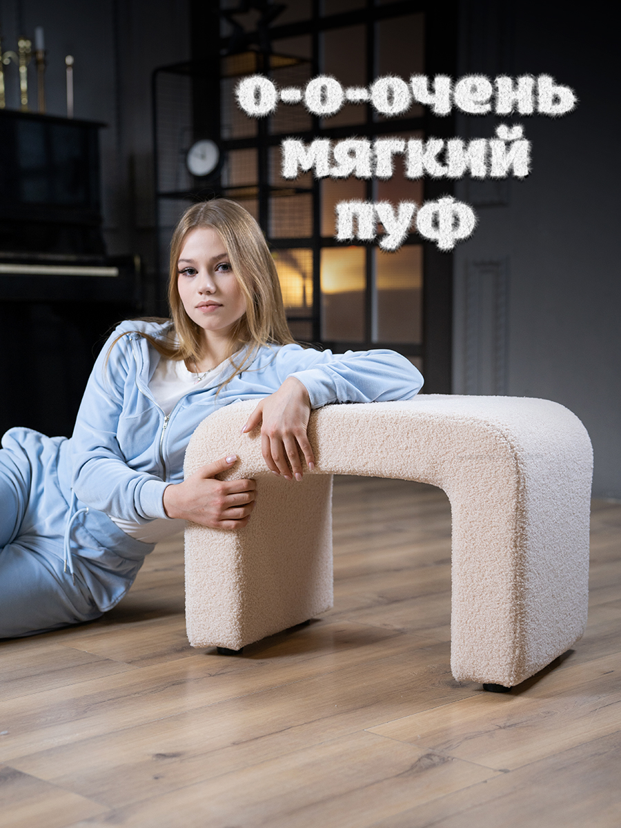Пуфик арка в прихожую из коллекции Тофф - мягкий, как барашек... именно такое название закрепилось за материалом букле, изделия из которого уверенно набирают популярность в современной мебели.