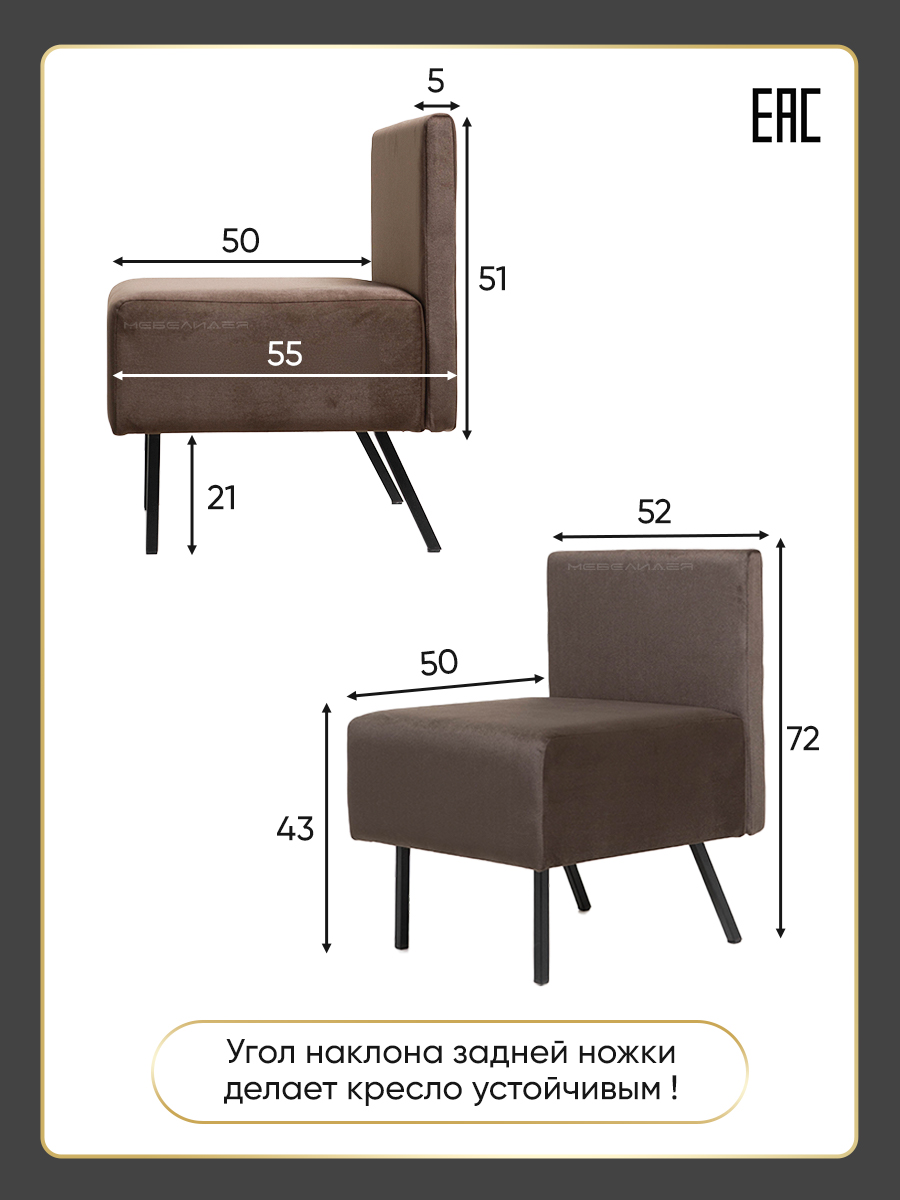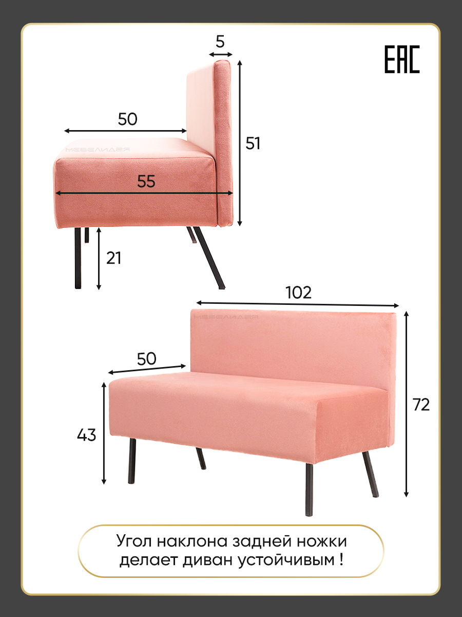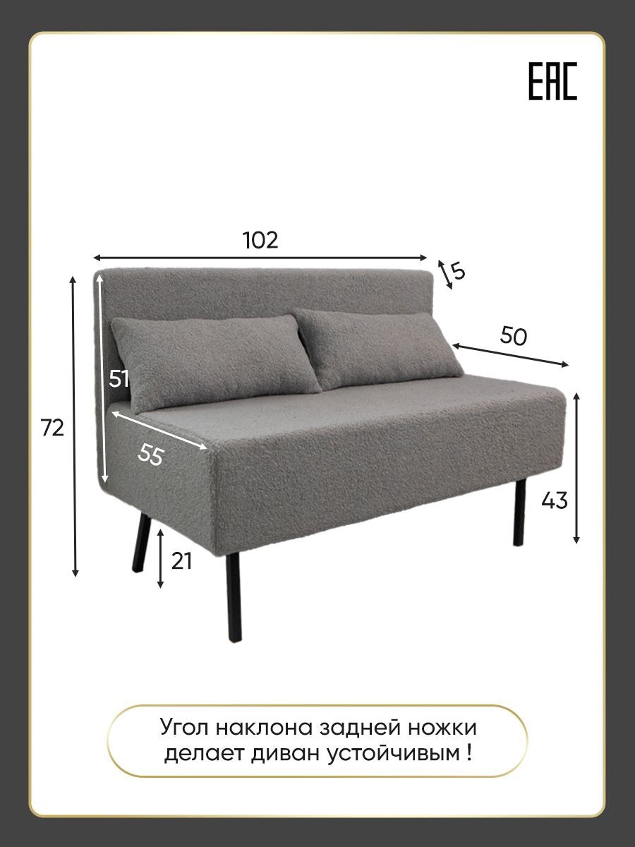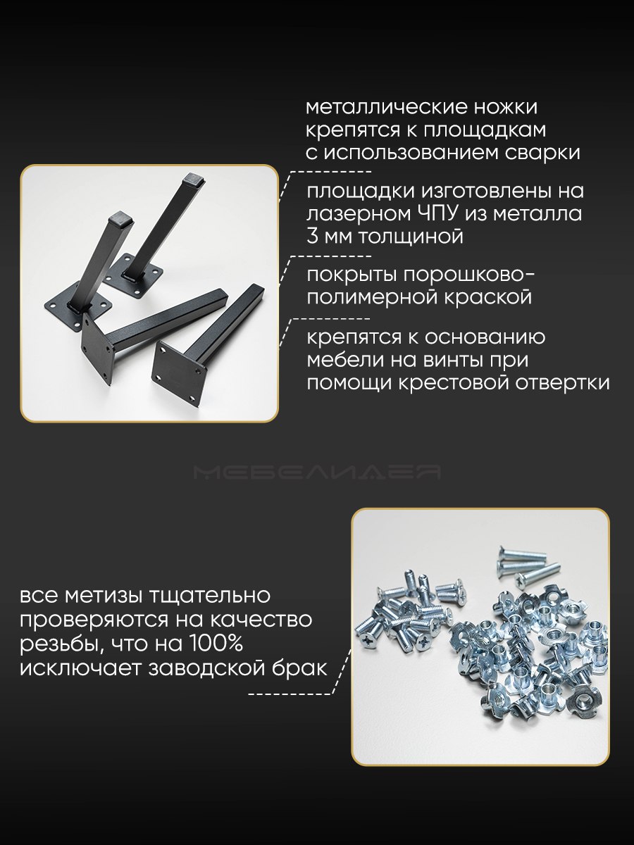 Мы разработали особый вид каркаса диванов, и технологию их изготовления.Используем берёзовую фанеру и сухой сосновый брус-это экологичные материалы, крепкие, легкие и устойчивые к большим нагрузкам. И основание, и спинка имеет свой внутренний каркас,что позволяет дивану в собранном виде выдерживать нагрузку в 200 кг. Ножки в дизайнерском диване изготовлены из металлического профиля, 20×20 мм. К площадкам крепятся с использованием сварки, сами же площадки металлические, толщиной 3 мм, вырезаются на лазерном ЧПУ станке. Покрываются ножки порошково-полимерной краской черного цвета, устойчивой к механическим повреждениям. В сборе диван имеет прямой угол, вплотную придвигается спинкой к основанию стены и даже при наличии плинтуса задние ножки его не задевают. Пластиковые заглушки уже установлены , что позволяет свободно передвигать изделие по полу без повреждений поверхности. Угол ножек в 25 градусов делает мини диванчик особенно устойчивым и внешне выразительным в любом интерьере. Для сборки вам потребуется только крестовая отвёртка, и несколько минут вашего времени; подробная инструкция в комплекте. Весь монтаж нашего дивана производится на винты, которые предварительно проходят проверку на качество резьбы, чтобы исключить заводской брак. Наша компания не пытается конкурировать с более бюджетными аналогами: ткани премиального класса, материалы качественные, технология более трудоёмкая и затратная, все это повышает себестоимость изделия. Но в конечном итоге мы получаем надёжный и красивый товар, готовый на многолетнюю службу для своих владельцев. Вес диванчика без упаковки-18 кг. Желаем вам хороших покупок!