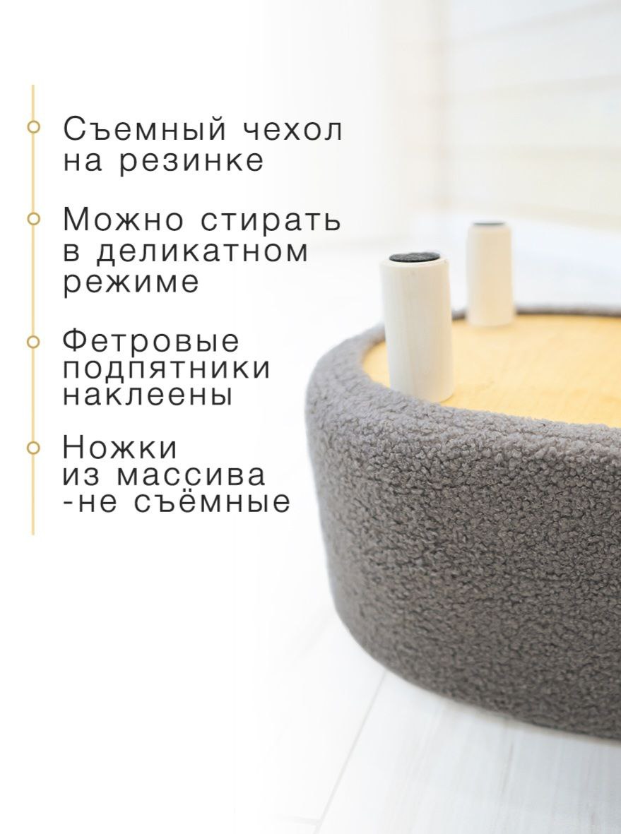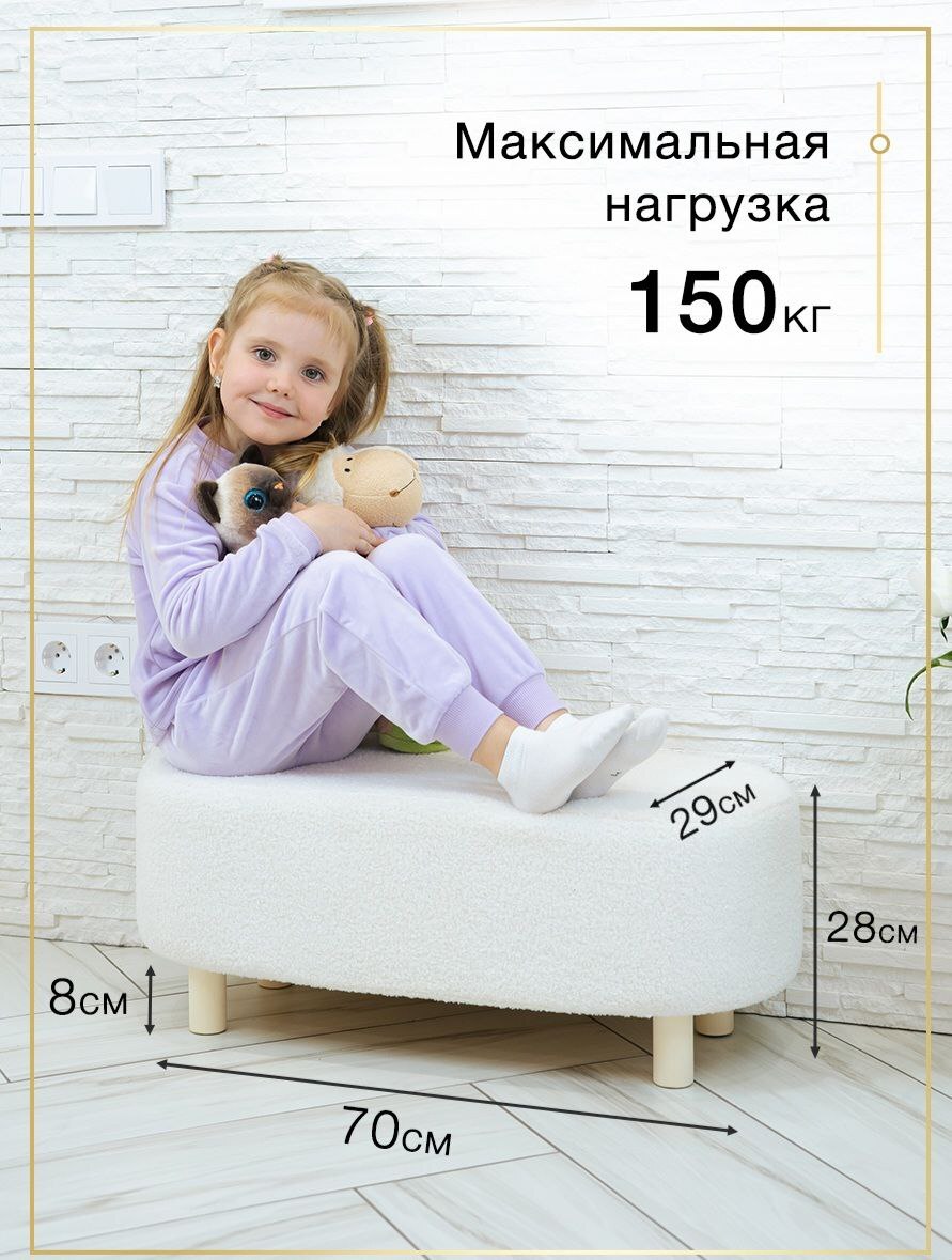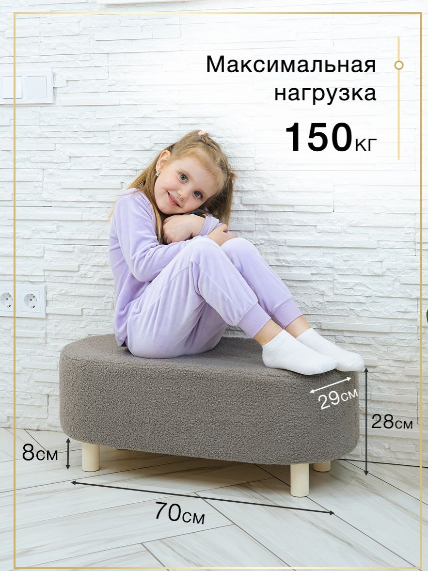 Благодаря небольшой высоте мягкий пуф можно использовать как подставку для ног, ступеньку или прикроватный пуфик. Идеально подойдёт для детей от 2 лет! Крепкий каркас из натуральных и надежных материалов выдерживает нагрузку до 150 кг. Ножки из массива, не съёмные,чтобы исключить непроизвольное откручивание и травму ребёнка. Основной чехол съёмный , вы сможете постирать его в деликатном режиме, при необходимости. Обуваться вашему ребёнку теперь будет гораздо комфортнее! Более того, эту мягкую банкетку можно использовать в качестве стульчиков для детей в игровой зоне или комнате. Модный тренд в тканях-букле очень приятный на ощупь и мягкий, легко чистится и не мнётся при использовании. Вес у подставки для ног всего 4 кг. Также в нашем магазине вы подберёте множество подобных изделий мягкой мебели в той же ткани и расцветке. Хороших вам покупок!