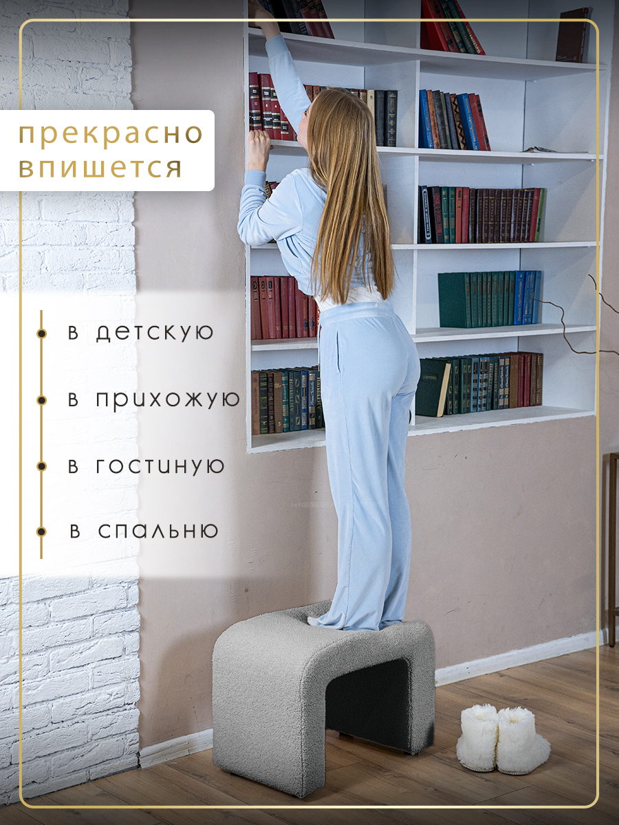 Вы можете использовать его как подставку под ноги или пуф для туалетного столика, в качестве мягкой банкетки в прихожую и спальню, пуфика в комнате или детской. Пуф Арка станет прекрасным подарком для дорогих вам людей и родных.