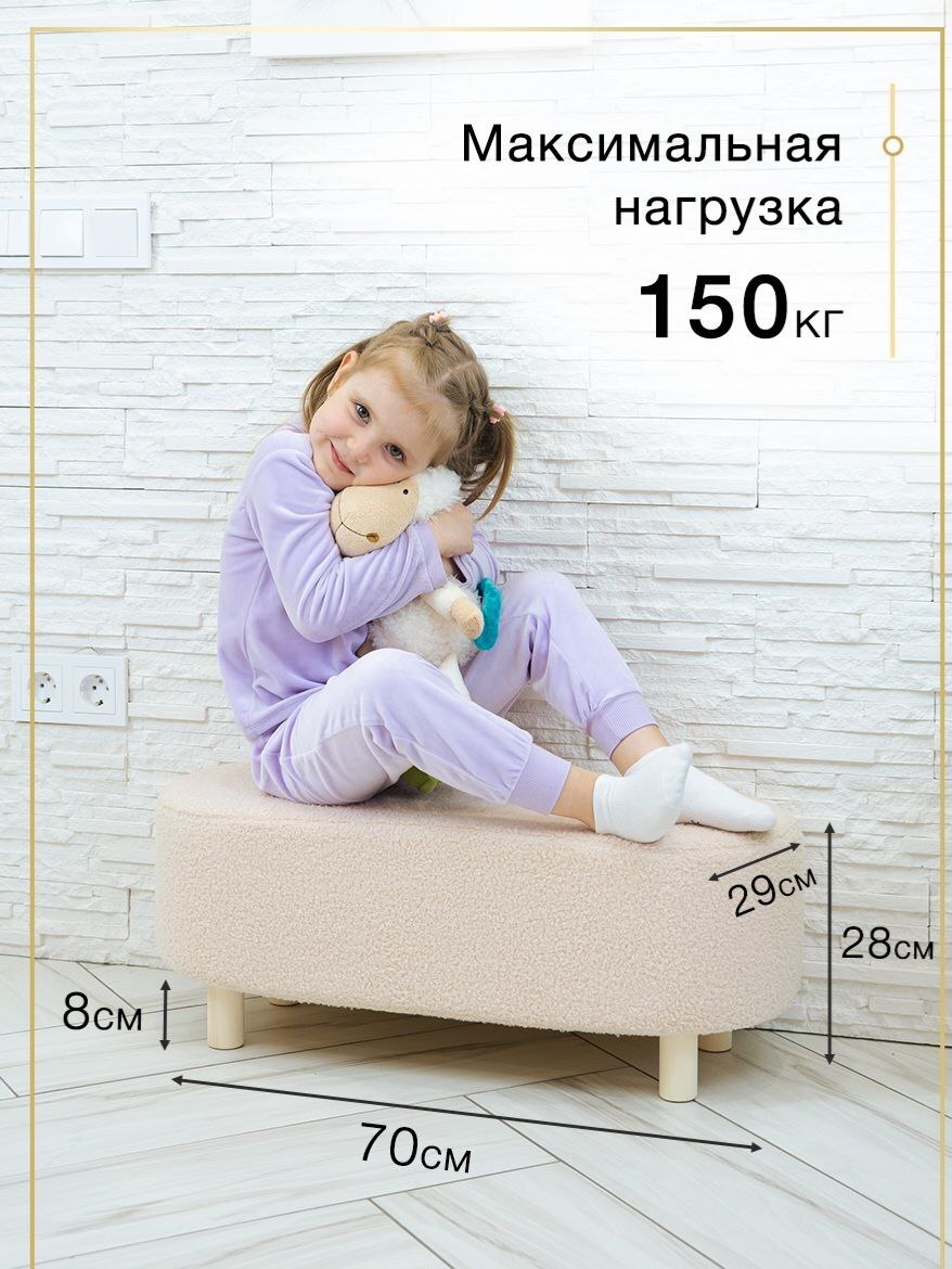 Пуфик банкетка в детскую или прихожую непременно понравится и будет полезен как детям, так и взрослым. Овальная,вытянутая форма,компактный размер, стильный дизайн и красивое, мягкое "барашковое" покрытие-пуфик без труда найдёт место в вашем доме и будет полезен в ежедневном обиходе.