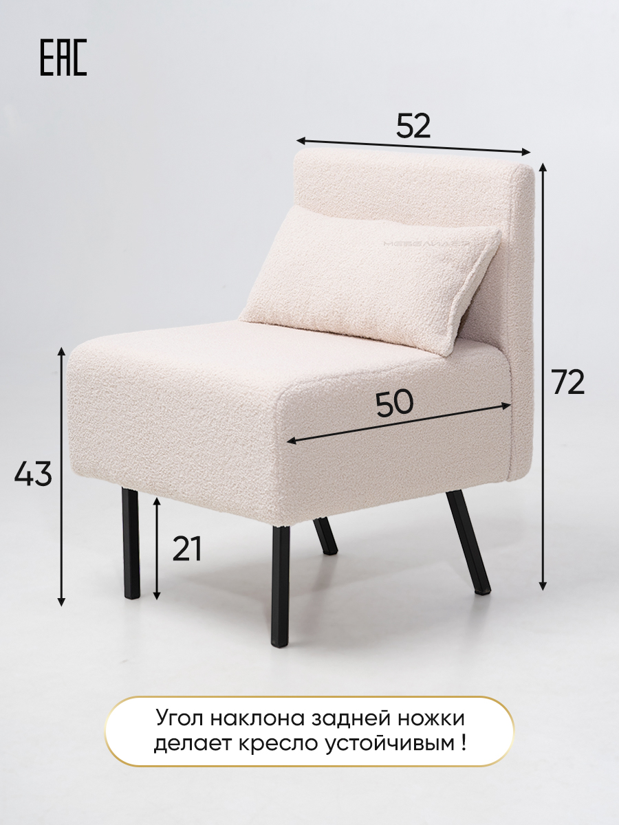 Наши мастера разработали особый вид каркаса и технологию изготовления. И основание, и спинка имеет свой внутренний каркас,что позволяет креслу в собранном виде выдерживать нагрузку в 200 кг. В сборе кресло имеет прямой угол, вплотную придвигается спинкой к основанию стены. Наша компания не пытается конкурировать с более бюджетными аналогами: ткани премиального класса, материалы качественные, технология более трудоёмкая и затратная, все это повышает себестоимость изделия. Но в конечном итоге мы получаем надёжный и красивый товар, готовый на многолетнюю службу для своих владельцев. Вес изделия 11 кг. Желаем вам хороших покупок! С уважением компания Мебелидея