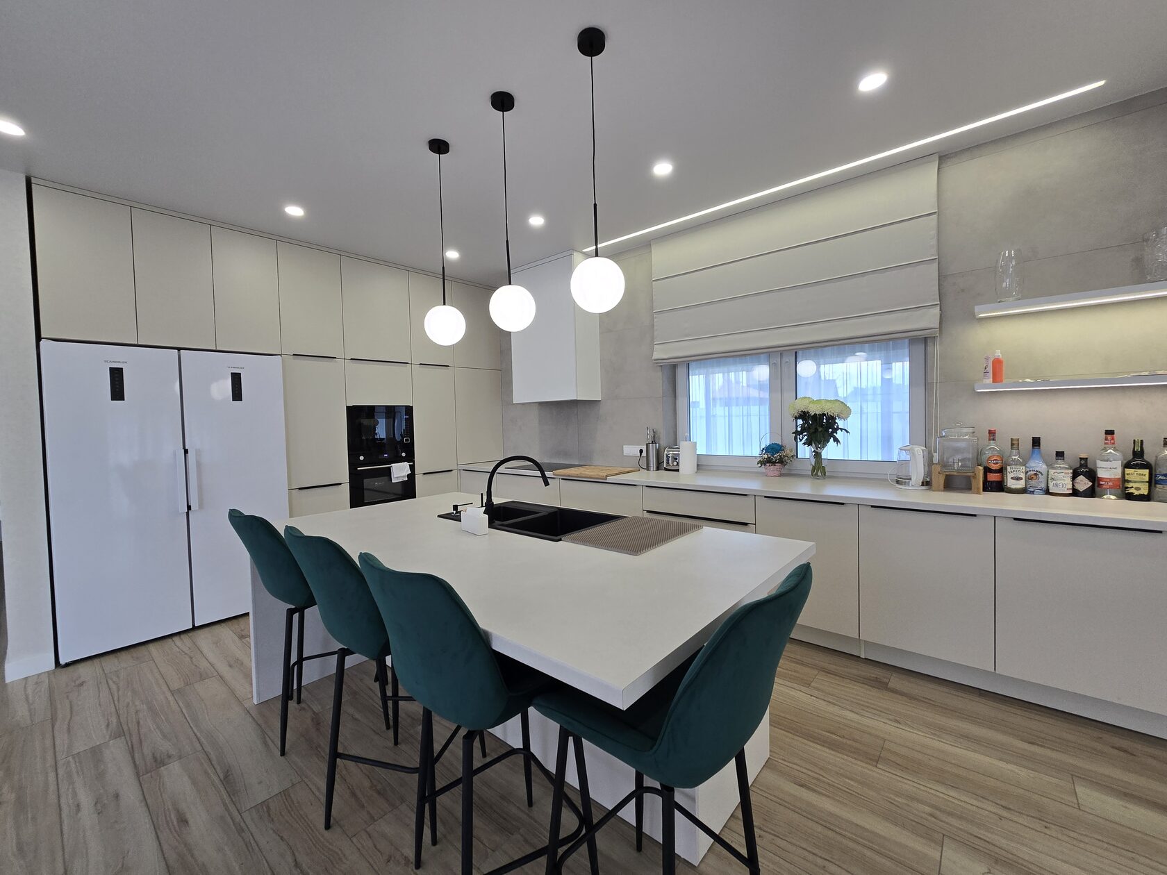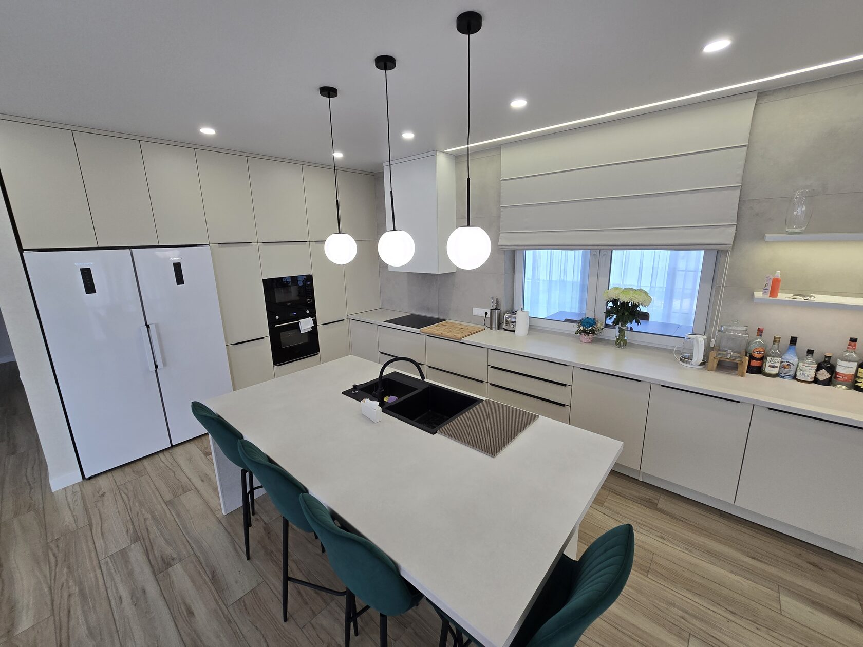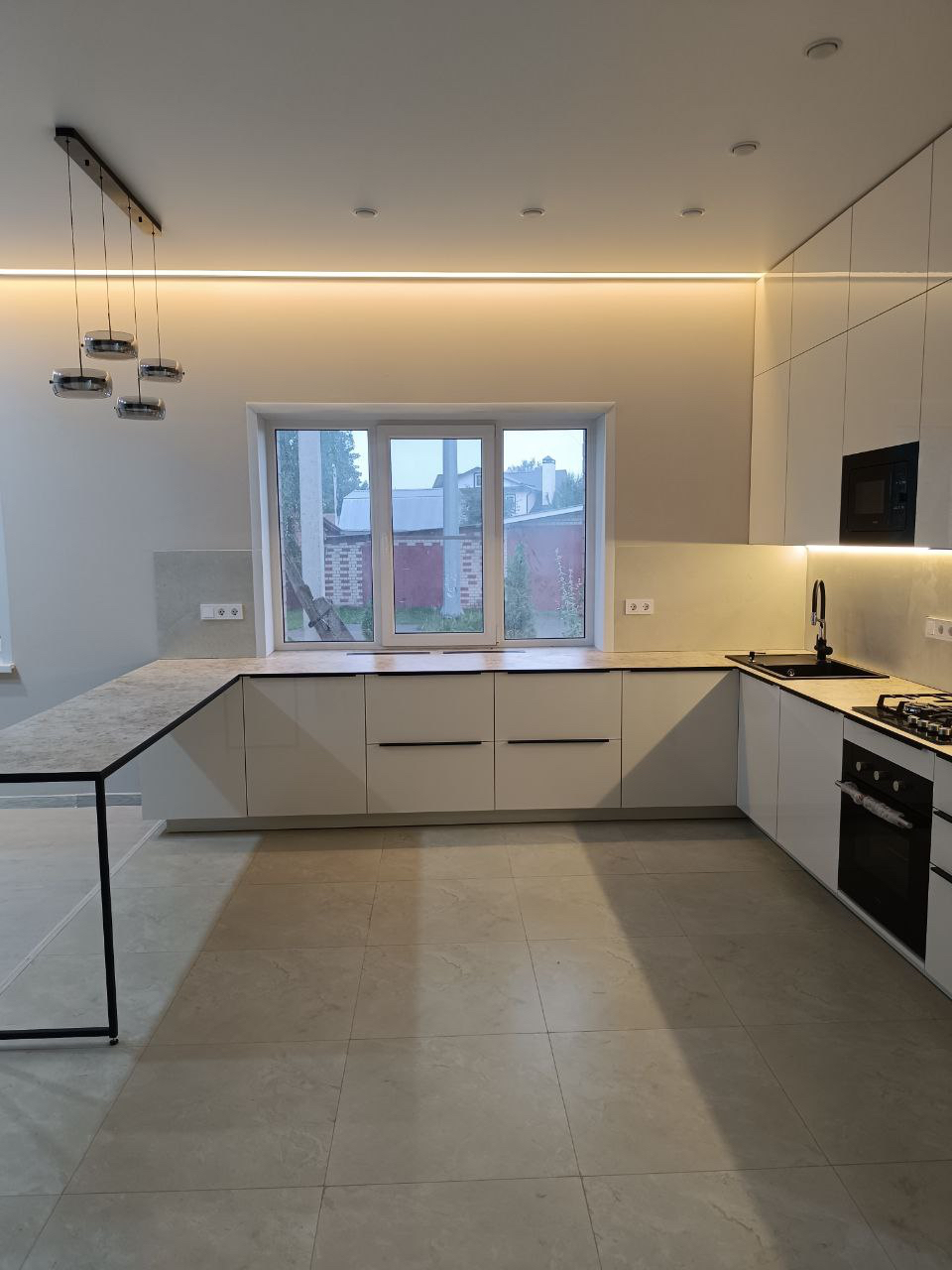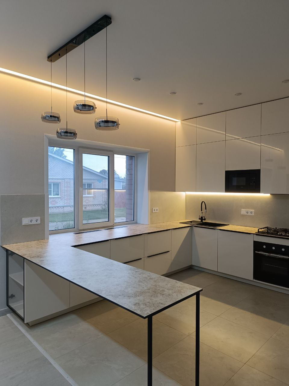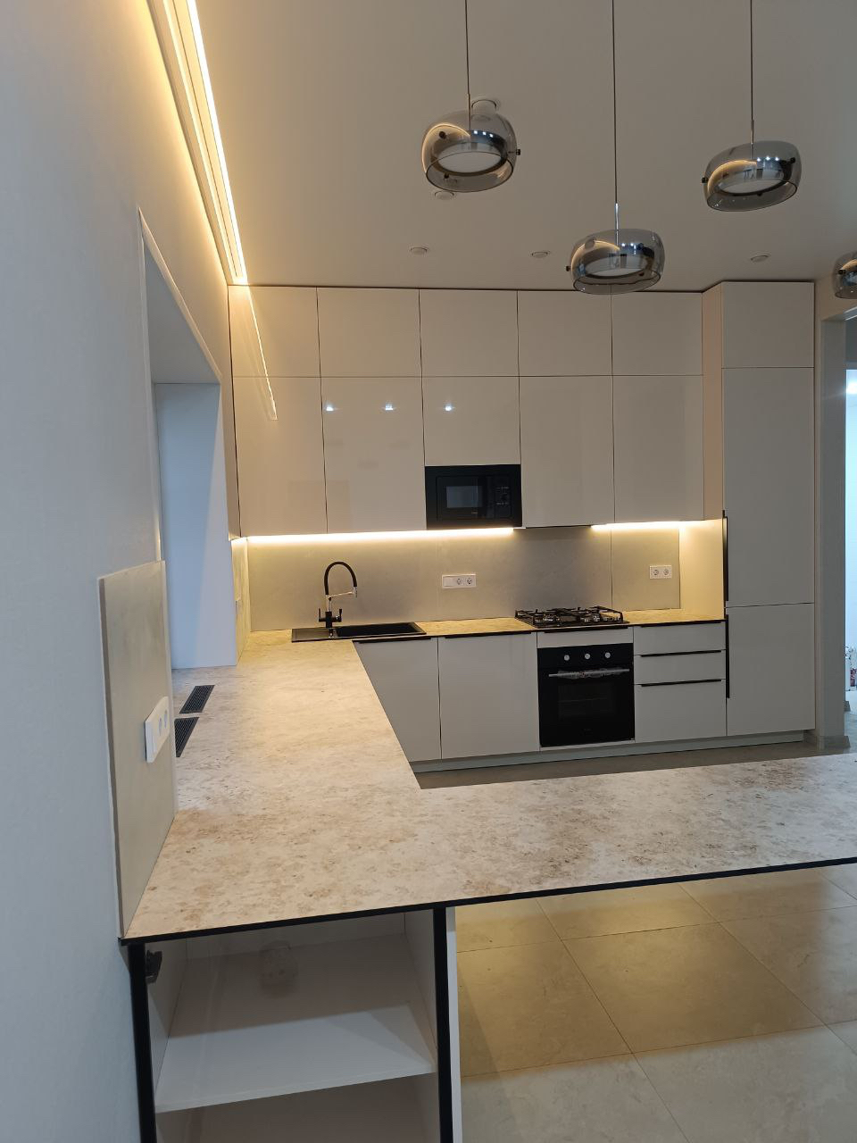 Кухня с островом из пластика