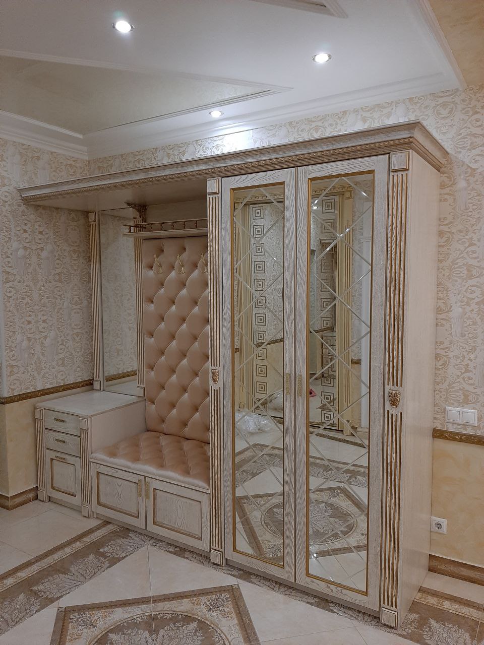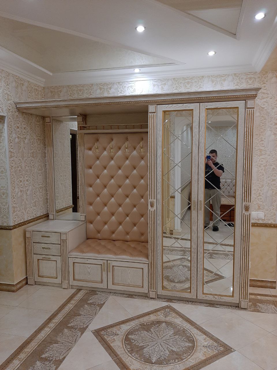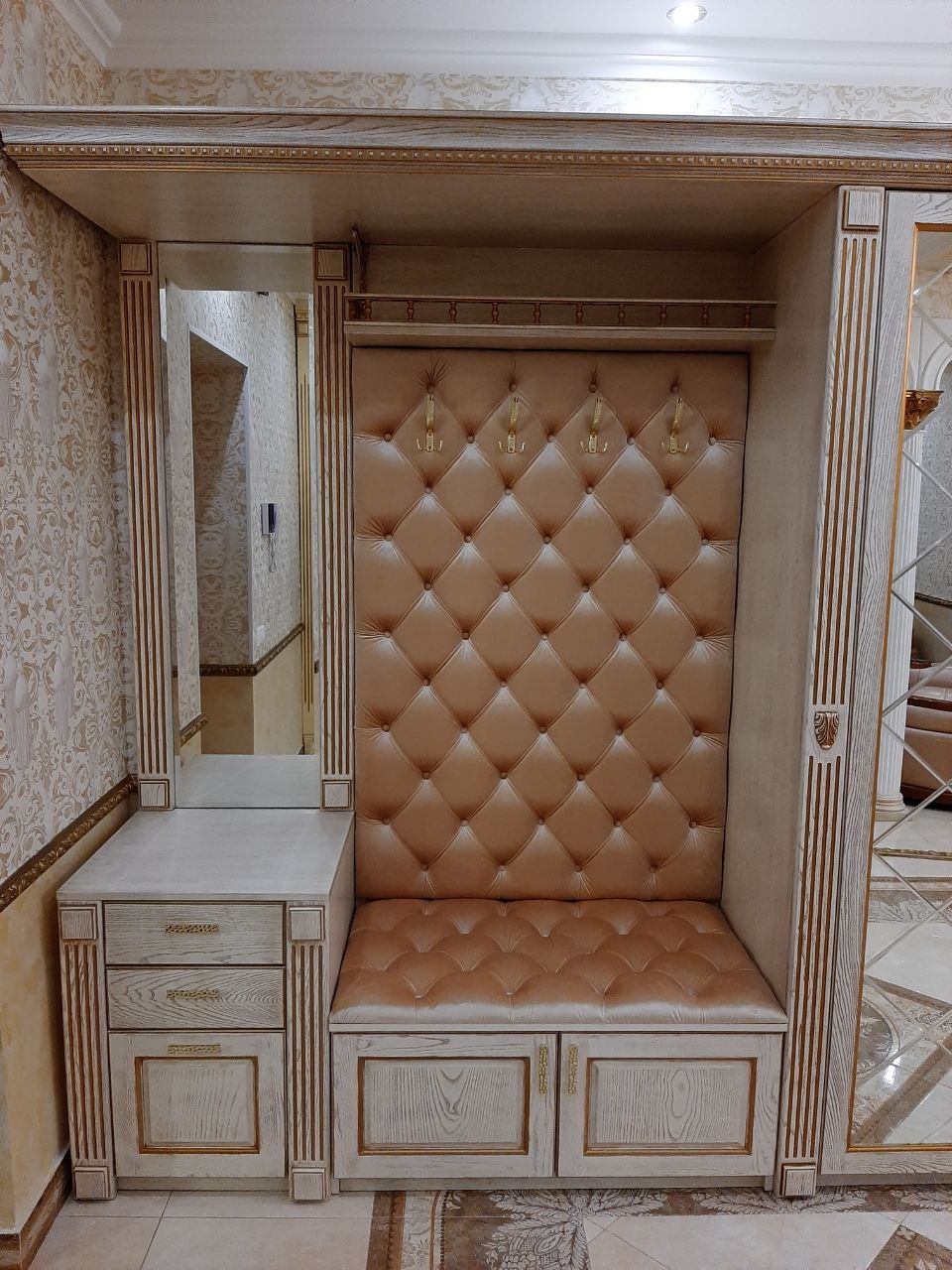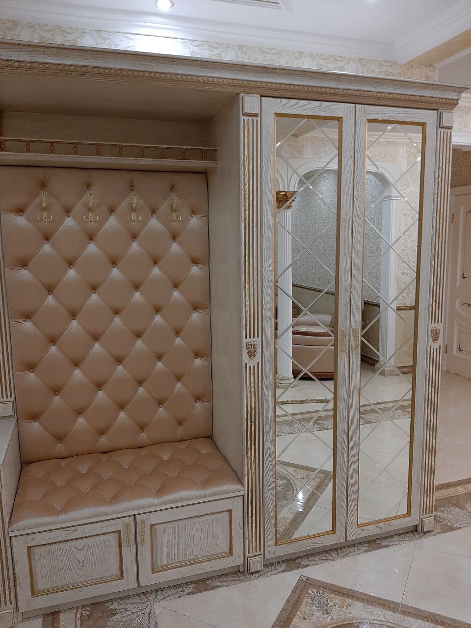 Прихожая в Ярославле. Массив ясеня с золотой патиной. Зеркало с фацетом